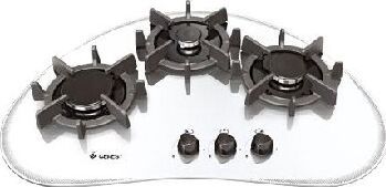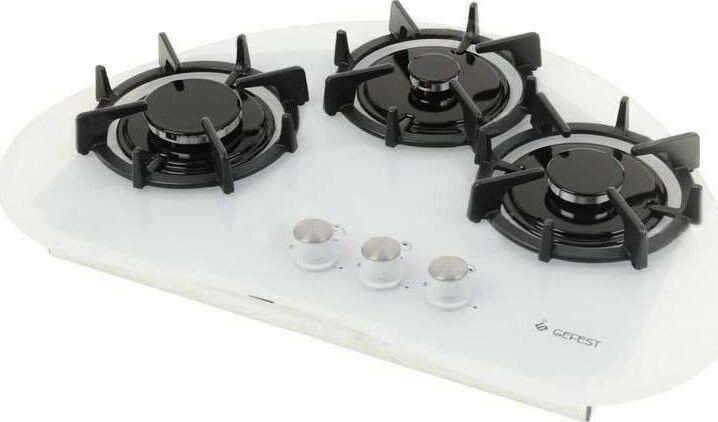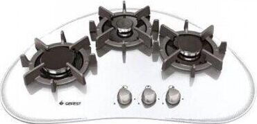 Габариты (ВхШхГ) 10,2х73,3х50см. 3 конфорки. Переключатели поворотные. Электророзжиг от отдельной кнопки. Фиксированное положение «малое пламя». Система «газ-контроль». Варочная поверхность: стеклянная. Чугунные решетки стола.