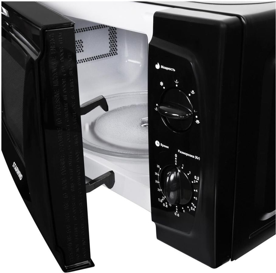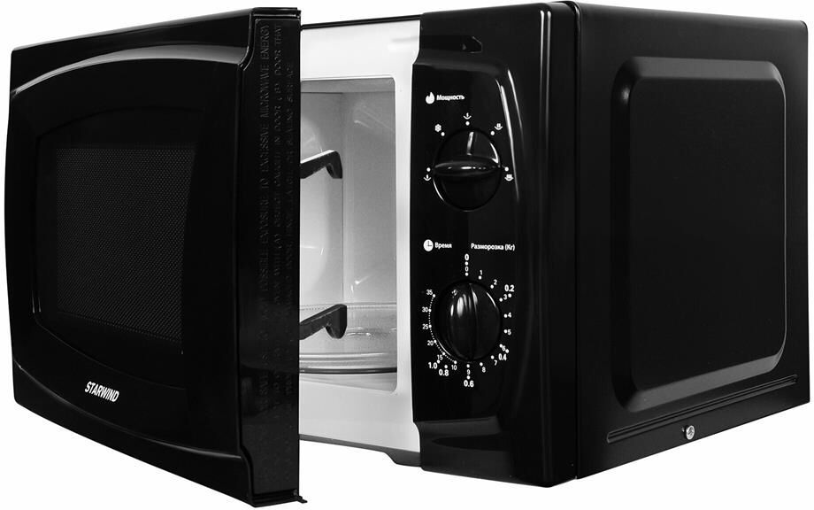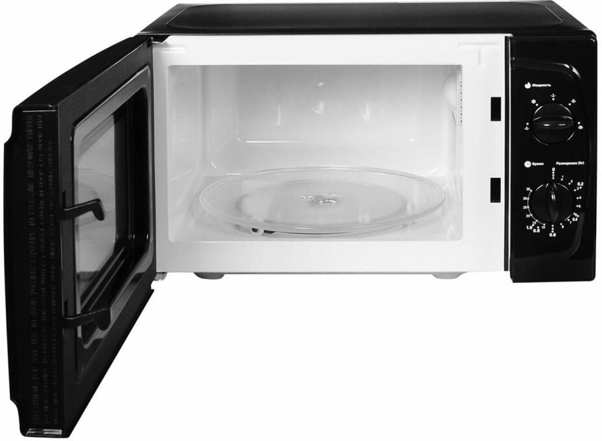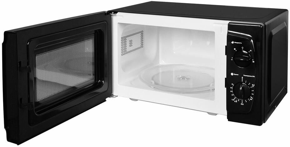 Объем 20 л; Мощность 700 Вт; 5 уровней мощности; Максимальное время приготовления 35 мин; Поворотный стол 25,5 см; Функция разморозки; Сигнал об окончании готовки; Механизм открывания дверцы – ручка; Тип управления: механический; Цвет: черный, размер печи нетто 440x346x259 мм