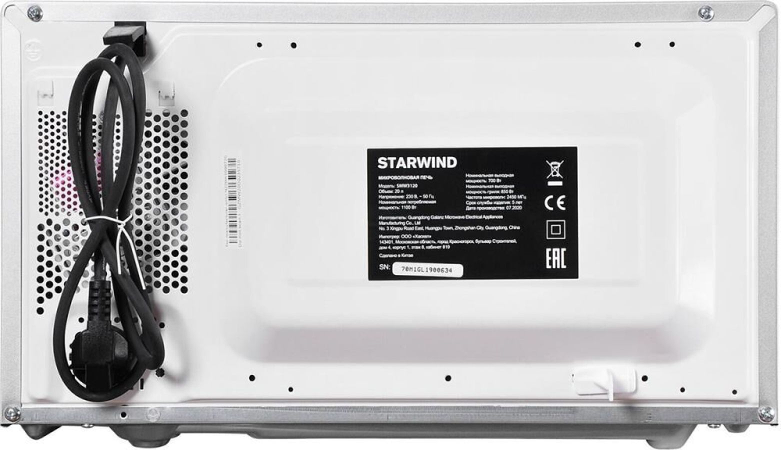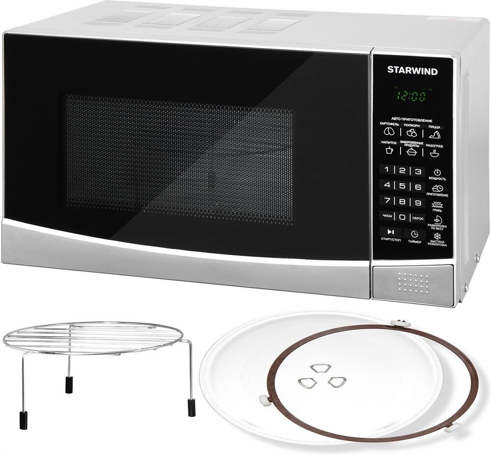 Объем20 л; Мощность микроволн700 Вт; Внутреннее покрытие камерыЭмаль; Диаметр поддона245 мм; ПереключателиКнопочные; РежимыГриль, микроволны + гриль, разморозка; Дополнительные режимы; Автоматическая разморозка, автоматический разогрев, автоматическое приготовление, звуковой сигнал от…; ОсобенностиБлокировка от детей, дисплей, подсветка камеры, программирование рецептов в память; ШхВхГ45.20х26.20х32.70 см