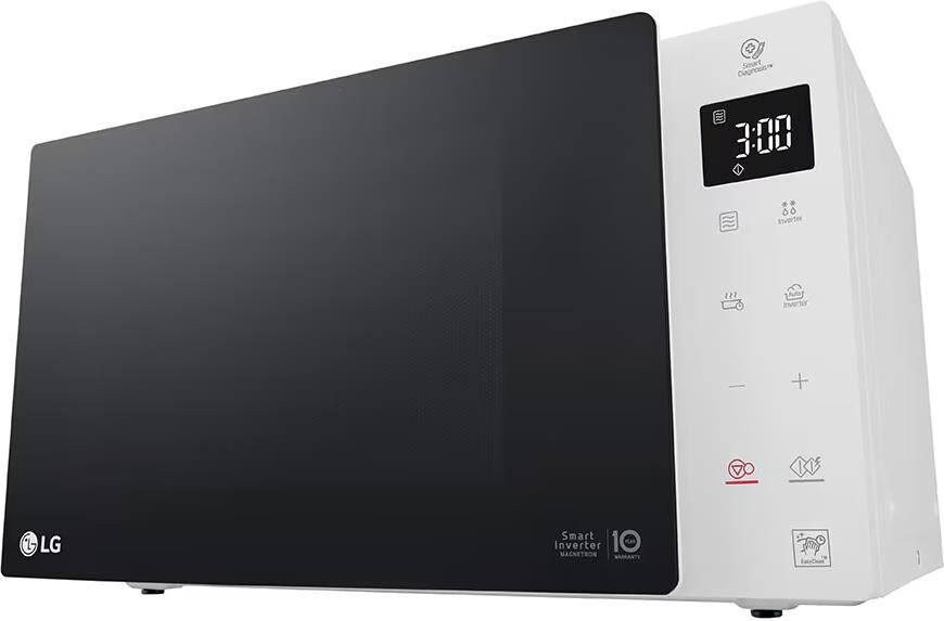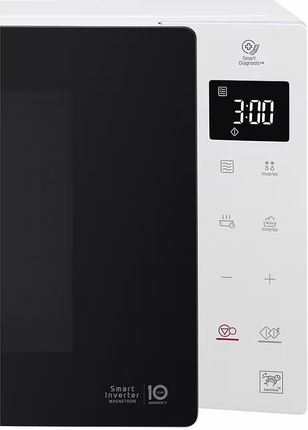 Тип микроволновой печи Соло.Цвет корпуса Белый. Цвет дверцы / Панели управления Черный / Белый. Дизайн дверцы Задымленное стекло. Тип управления СенсорноеТип открывания дверцы Сбоку. Объем камеры (л) 25.Диаметр поворотного стола (мм) 292. Выходная мощность (Вт) 1000.Микроволны (Вт) 1150. Автоприготовление (кол-во режимов) ● (24).Авторазмораживание (кол-во режимов) ● (4).