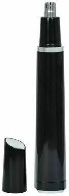 Триммер для удаления нежелательных волос в носу и ушах -имеет металлический привод (латунь) -ножи выполнены из нержавеющей стали Номинальное напряжение питания 1,5 В Тип батареи ААА 1,5 В (1 шт) Комплектность: -Триммер -Кисточка -Руководство по эксплуатации