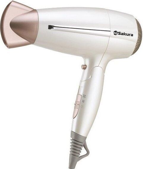 Мощность 2000-2200Вт, 3 температуры нагрева (теплый воздух, горячий воздух, очень горячий воздух), 2 скорости, режим сушки холодным воздухом Cool Shot, насадка-концентратор, защита от перегрева, складная ручка, цвет: белый