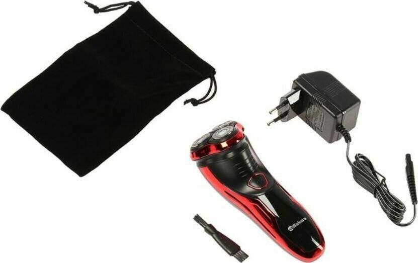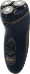 Бритва электрическая, работа от аккумулятора Ni-Cd (600 мА/ч), зарядка от сети 220-240В. Адаптер питания. 3 плавающие бритвенные головки. Влажное и сухое бритье. Бритвенные головки роторные. Щеточка д/очистки, мешочек д/хранения и переноски.