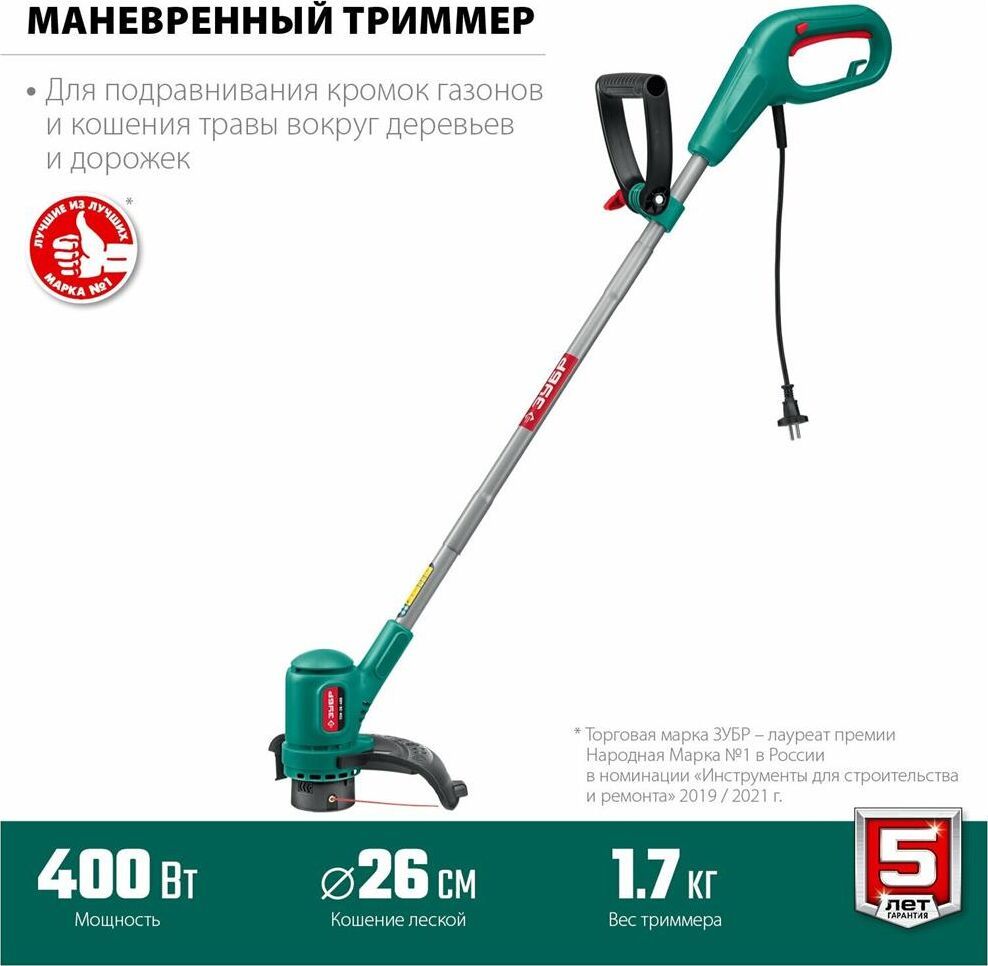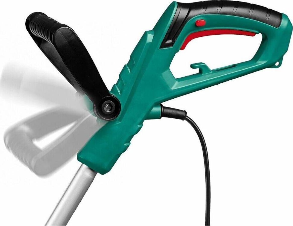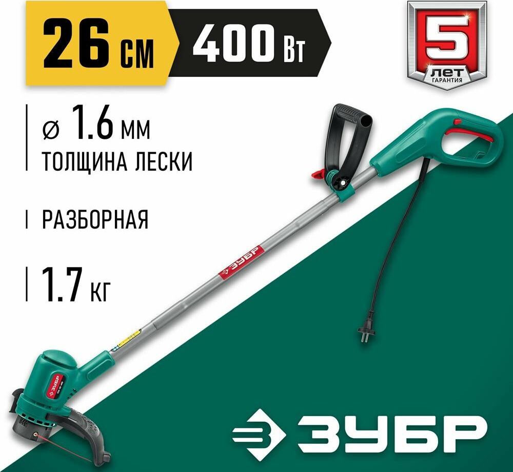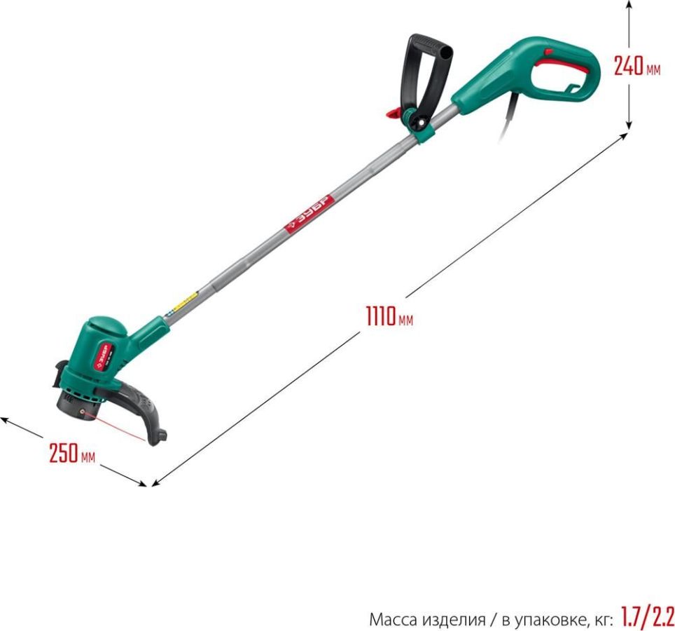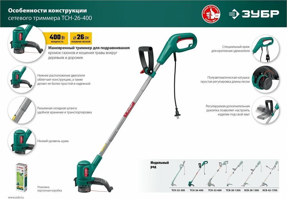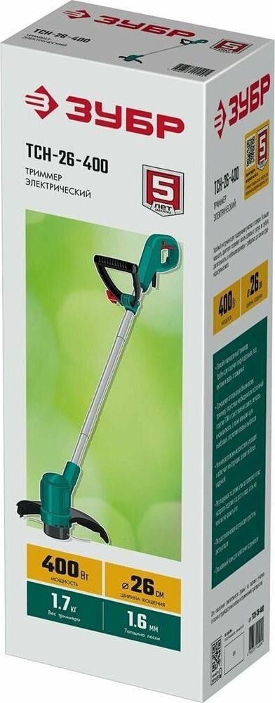 ощность, Вт 400. Частота вращения шпинделя, об/мин 11500. Режущий элемент леска. Ширина скашивания (леска), см 26. Толщина лески, мм 1.6. Тип катушки автоматическая. Тип рукоятки D-образная. Тип штанги складная. Ремень нет. Напряжение питания, В/Гц 220-240 /50. Габариты, см 63x25x11. Масса изделия, кг 1.7.