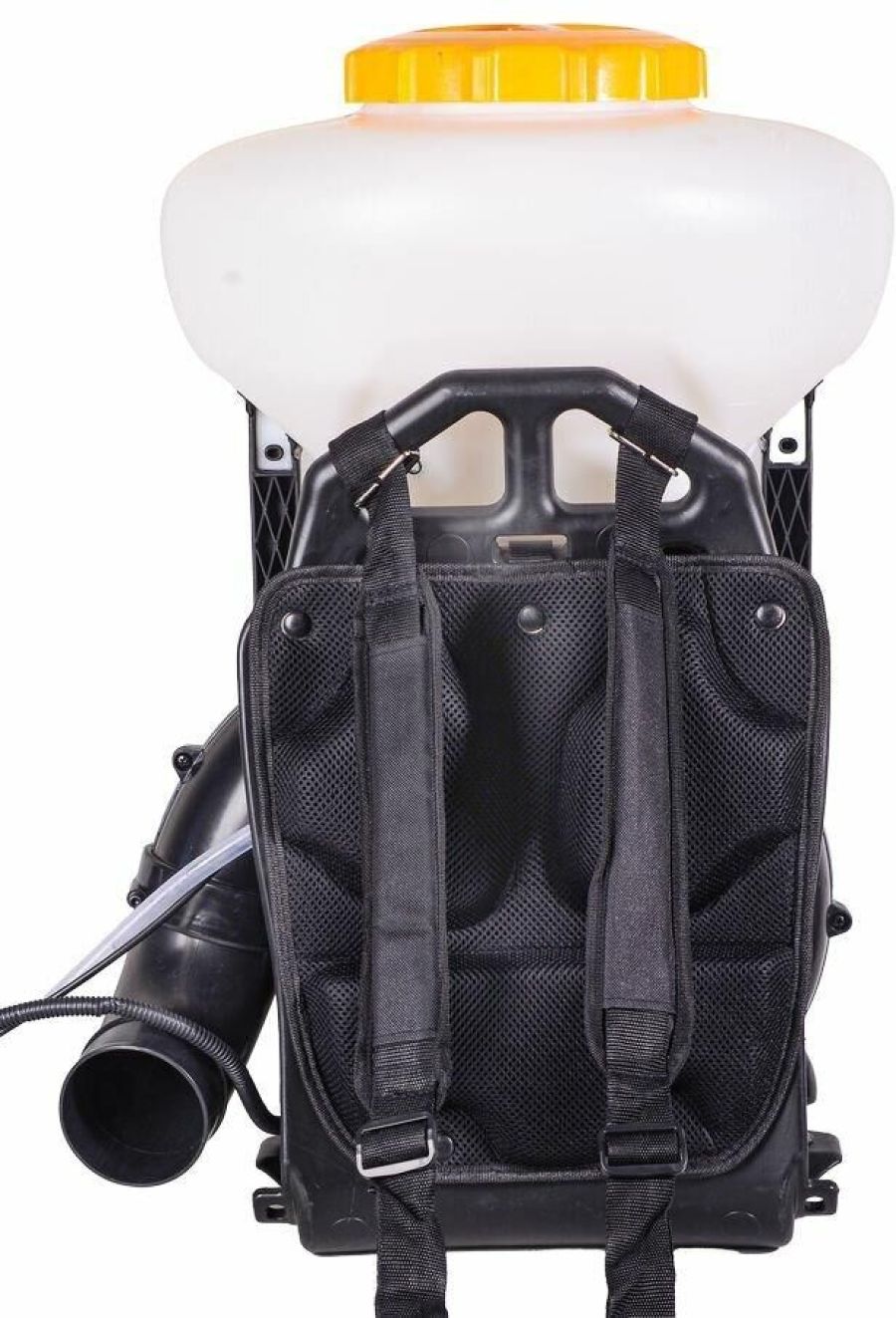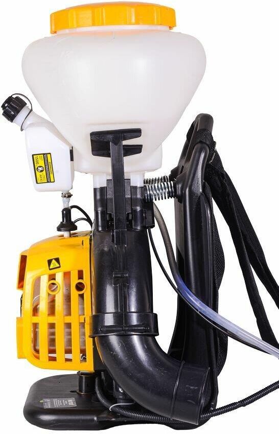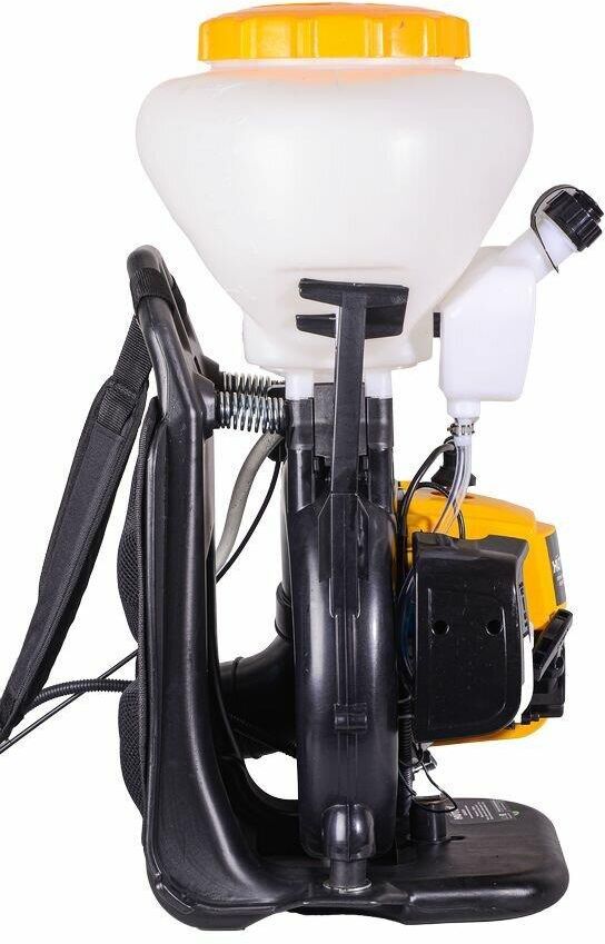 Опрыскиватель бензиновый Huter GS-4311 с баком на 14 л предназначен для масштабных работ по распылению смеси воздуха и любого жидкого химиката, поможет быстро обработать сад, двор, сквер, фермерское угодье. Модель оснащена одноцилиндровым 2Т двигателем мощностью 1,5 кВт с воздушным охлаждением, который запускается с помощью ручного стартера. Емкость бензобака составляет 1,5 л. Принцип работы устройства заключается в всасывании и нагнетании воздуха через напорную трубу.