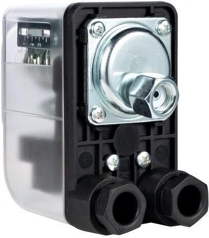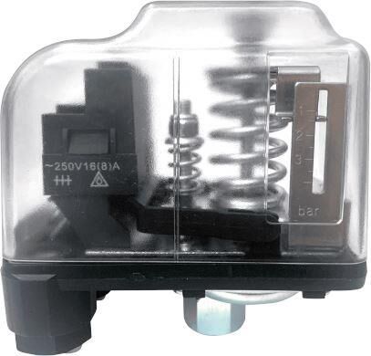 Реле давления PS-3 с шкалой, механическое реле давления,прозрачный пластиковый корпус, шкала давления включения, накидная гайка ¼ дюйма, заводская настройка давления — 1.4-2.8 бар