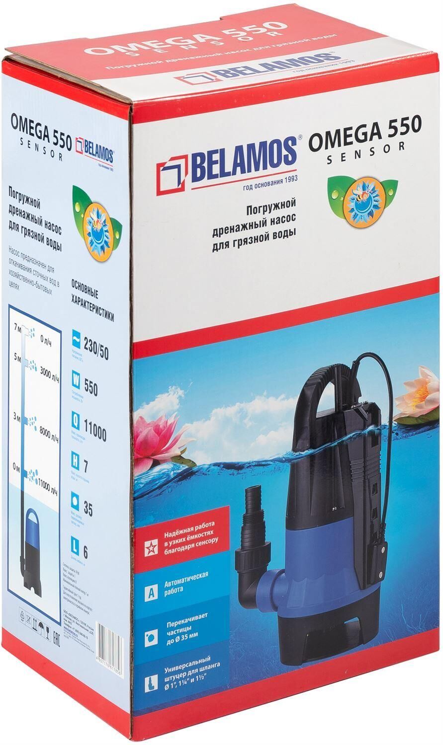 Насос погружной Omega 550 SENSOR, 550Вт, напор 7м, 183 л.м., кабель 6м, 4шт в коробке, частицы до 35 мм, корпус пластик, сенсорный поплавок, дренажно-фекальный