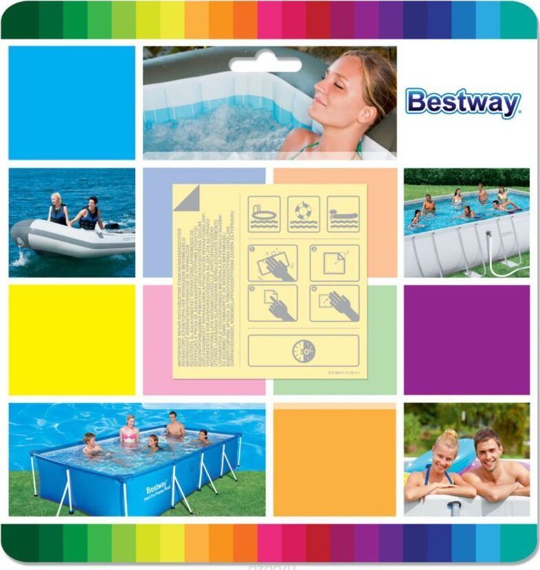 BESTWAY Ремонтный набор, водостойкий, 10 шт., 62091 Влагостойкий ремонтный комплект Bestway для ремонта различных виниловых изделий: надувных матрасов, кроватей, лодок, подушек и других изделий. Характеристики Ремонтный набор водостойкий 10 заплаток Размер заплатки: 6,5х6,5 см Размер упаковки, см : 24 x 24 x 1 Вес, кг: 0,04