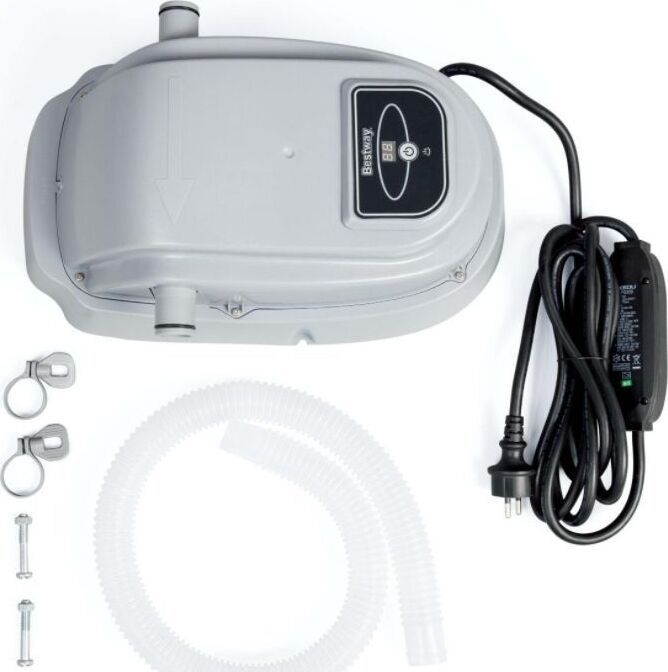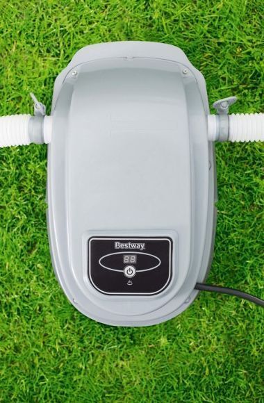 BESTWAY Водонагреватель для бассейна, 3785 л/ч, 58259 Характеристики: • Подогрев бассейна с цифровым управлением и сенсорной панелью управления • 220-240 В, 2800 Вт. • Подходит для бассейнов с объемом воды 1520-17 035 л и систем фильтрации с максимальной производительностью 3785 л / ч. • Максимальная мощность нагрева 40 ° C • Датчик расхода воды для повышения уровня защиты • Мобильное устройство защитного отключения (PRCD) В комплекте: 1 шланг O 32 мм, длина 1 метр 2 шланговых зажима