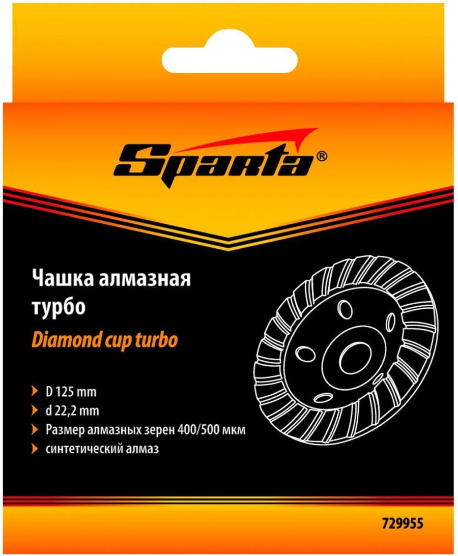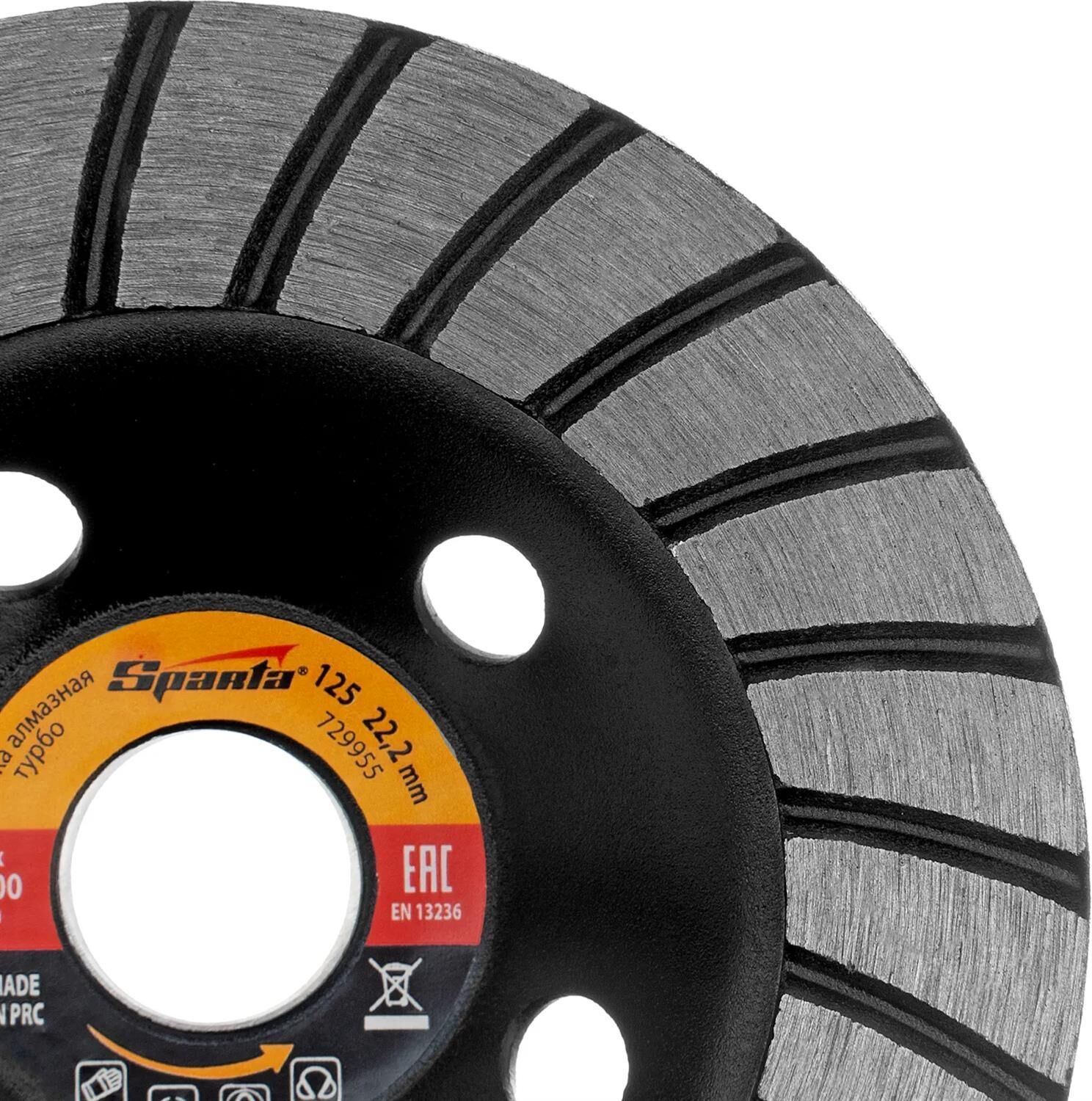 Алмазная зачистная чашка Sparta Turbo 729955 с посадочным отверстием 22,2 мм устанавливается на вал углошлифовальной машины, совместимой с оснасткой диаметром 125 мм. Применяется для точной шлифовки и придания гладкости поверхностям из бетона, гранита, мрамора, камня, а также кирпичной кладке. Пригодится для снятия фаски с гранитной или мраморной плиты. Движется плавно, удерживать ее можно без особых усилий. Алмазный слой высотой 4,5 мм позволяет эффективно выполнять поставленные задачи.