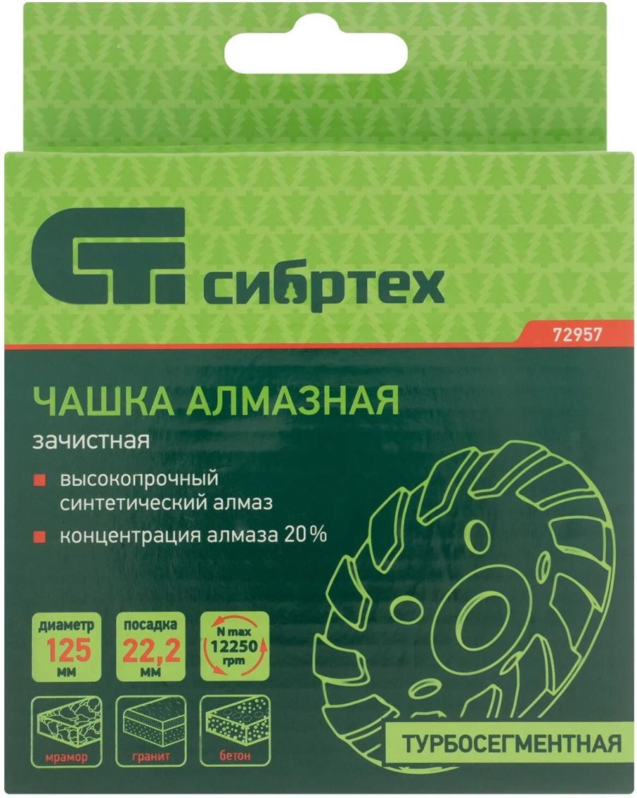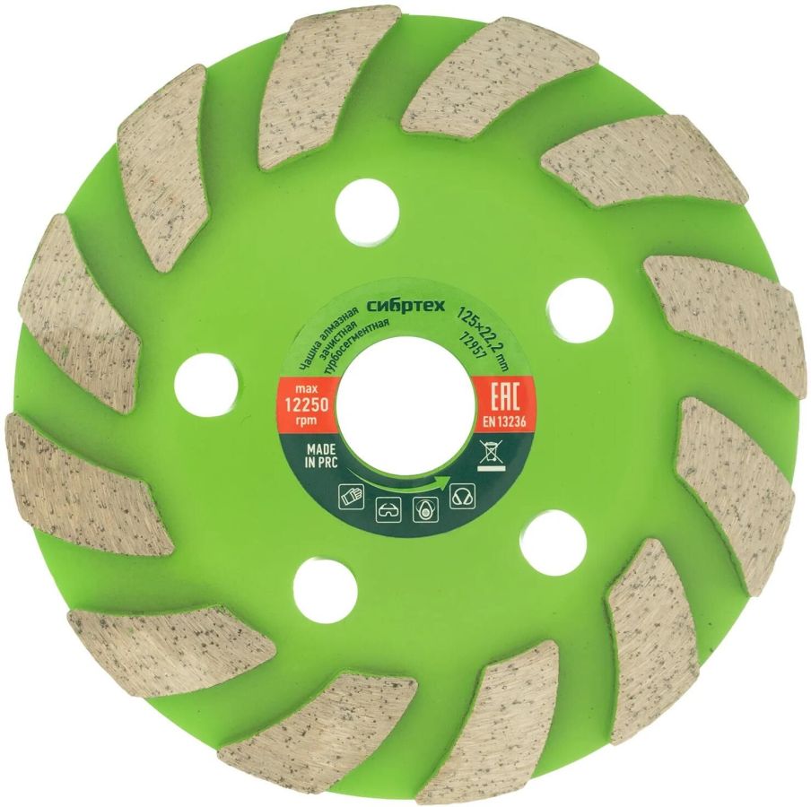 Турбо-сегментная зачистная алмазная чашка Сибртех 72957 диаметром 125 мм используется для поэтапной черновой обработки поверхностей и придания им гладкости. Оптимальна для шлифовки бетона, мрамора, камня, кирпича, гранита.