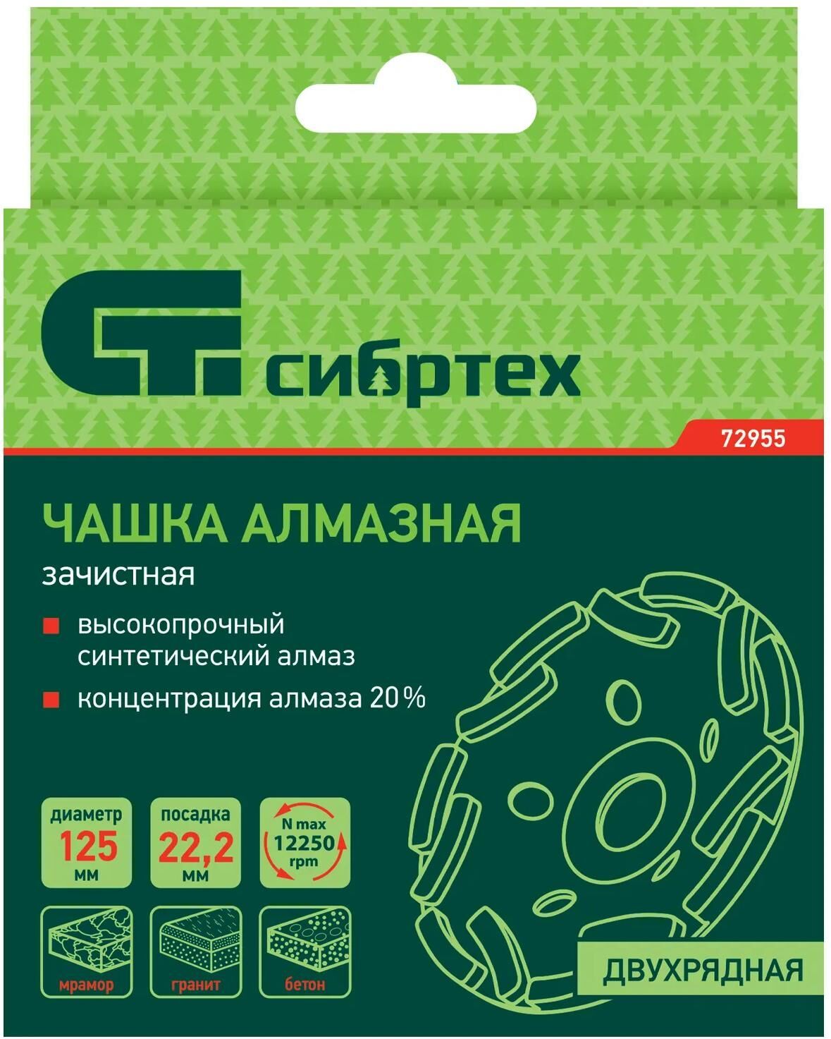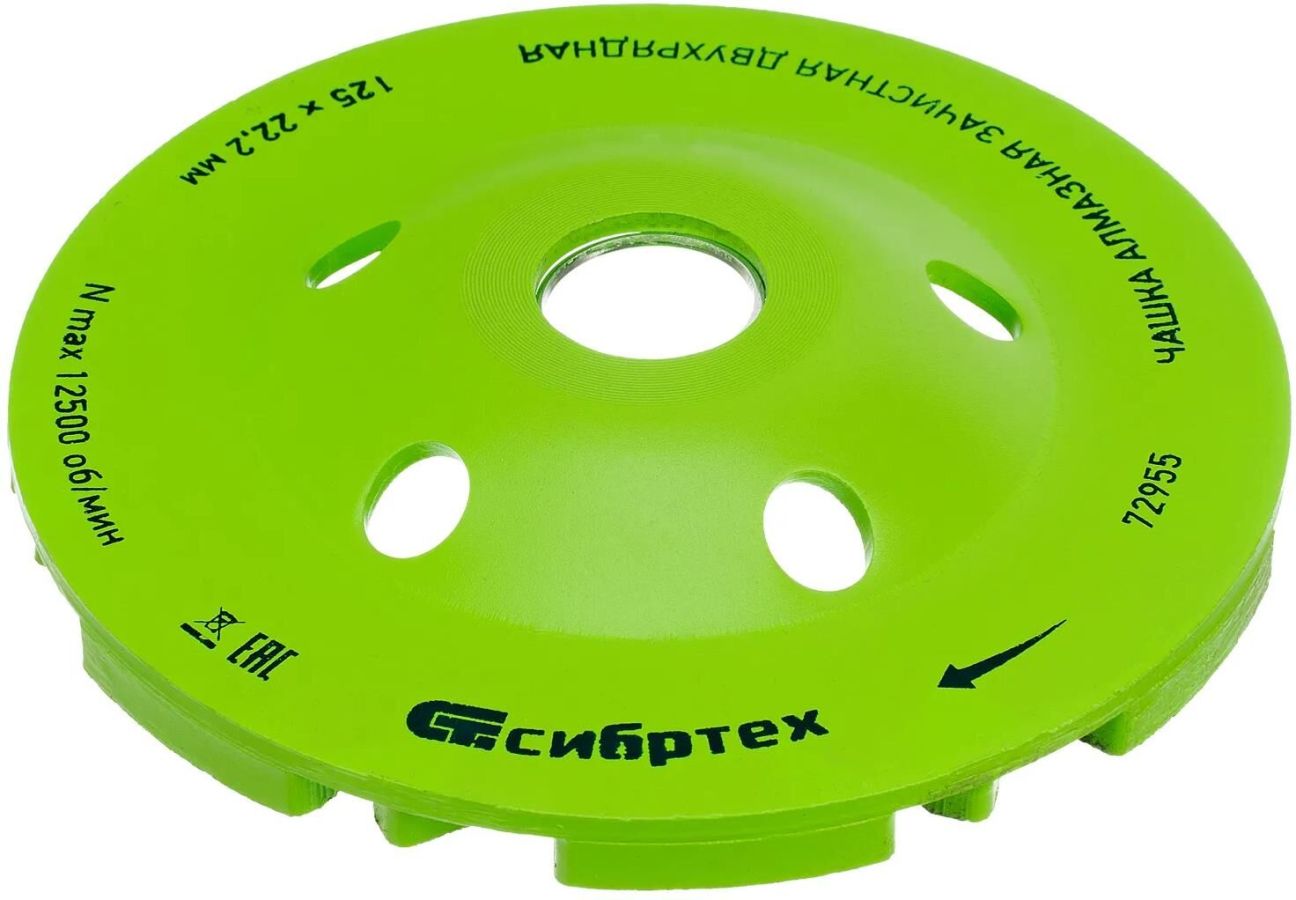 Двухрядная зачистная алмазная чашка Сибртех 72955 диаметром 125 мм устанавливается на углошлифовальную машину с посадочным размером 22,2 мм. Оптимальна для интенсивной черновой обработки и подготовки к последующей отделке бетонных, каменных, мраморных, кирпичных и гранитных поверхностей. С помощью чашки можно снять толстый слой бетона, выровнять швы и устранить наплывы после снятия опалубки, удалить крупные дефекты.