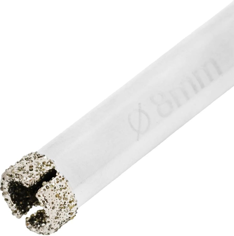 Универсальное алмазное сверло по керамограниту Matrix 726083 размером 8 х 67 мм, с 3-гранным хвостовиком, 2 шт. в упаковке, применяется для получения отверстий в стекле, плитке, кафеле. За счет высокой концентрации алмазов в режущем слое оно легко справляется со сверлением керамогранита.