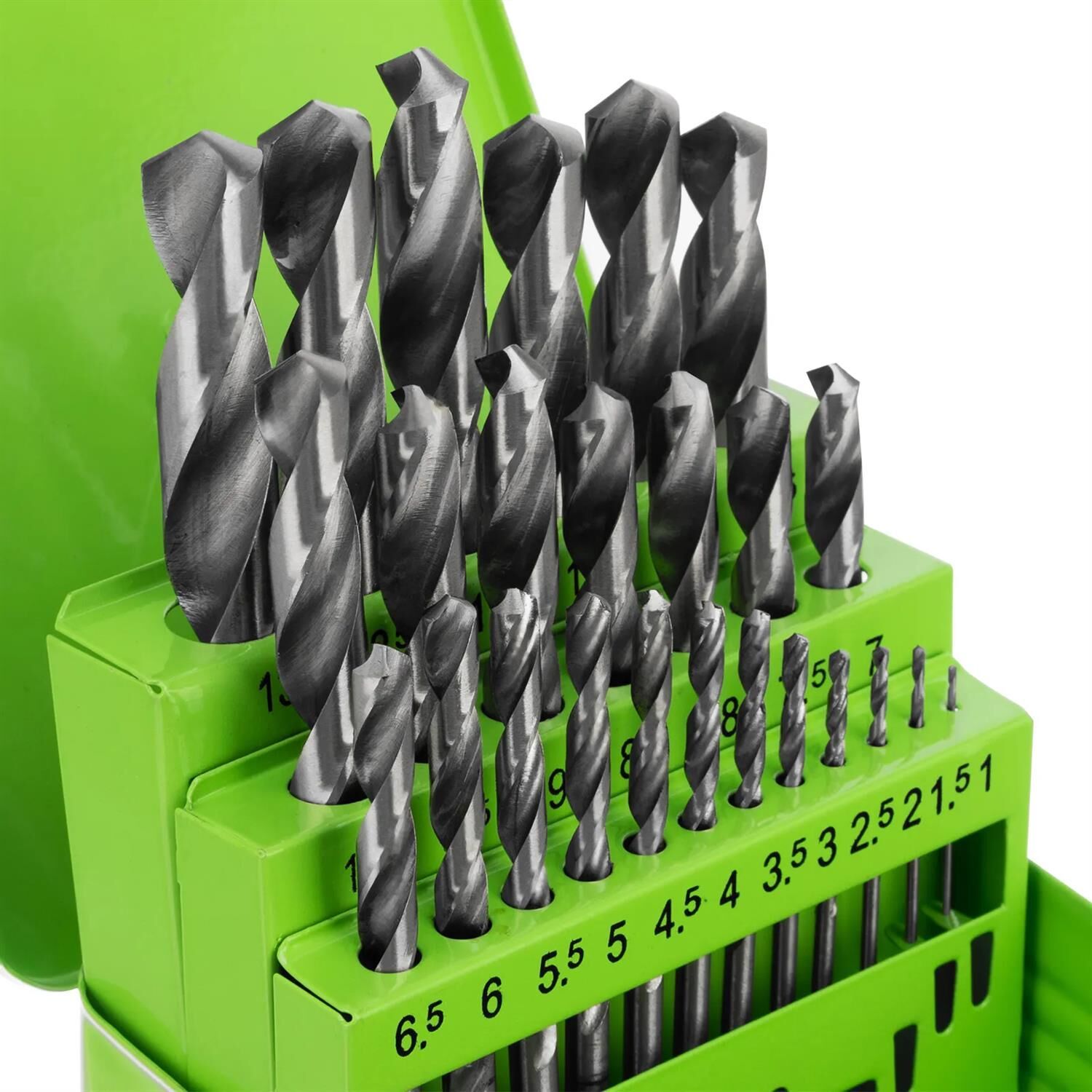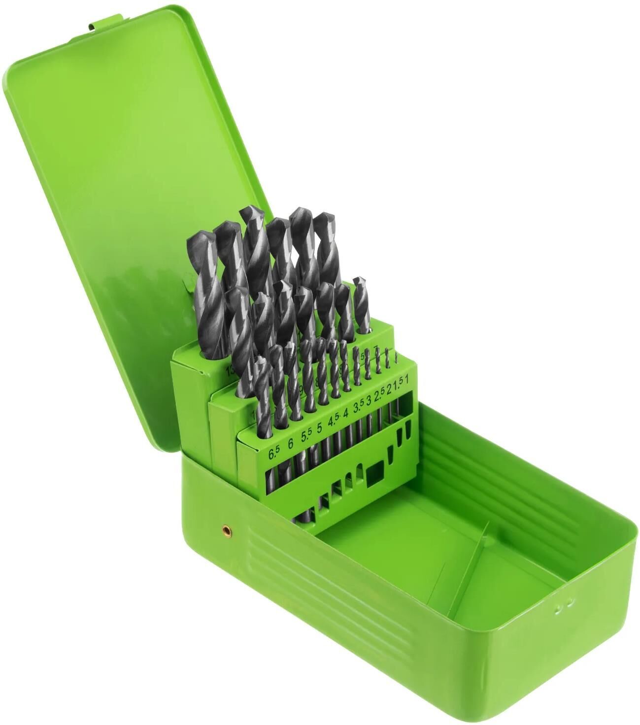 Набор сверл по металлу Сибртех 72379 диаметром 1-13 мм (через 0,5 мм), из стали HSS, с цилиндрическим хвостовиком, состоит из 25 шт. и упакован в металлическую коробку. Используется для получения отверстий в черных металлах, в том числе стали и чугуне.