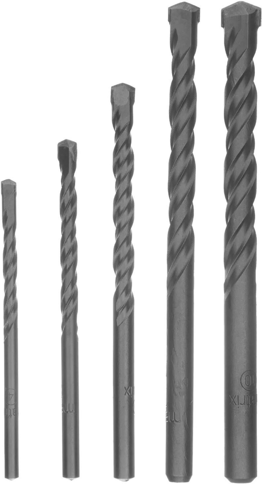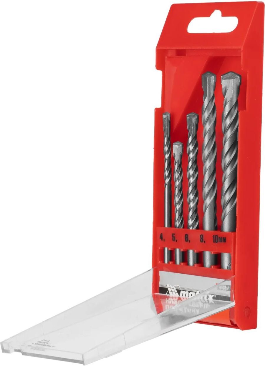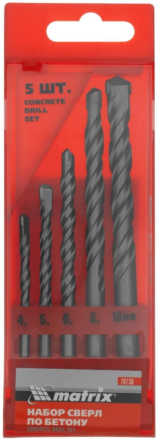 Набор Matrix 70730, упакованный в пластиковый кейс, включает в себя 5 сверл диаметром 4, 5, 6, 8, 10 мм для получения отверстий в твердых материалах: бетоне, керамике, мраморе и т. д.