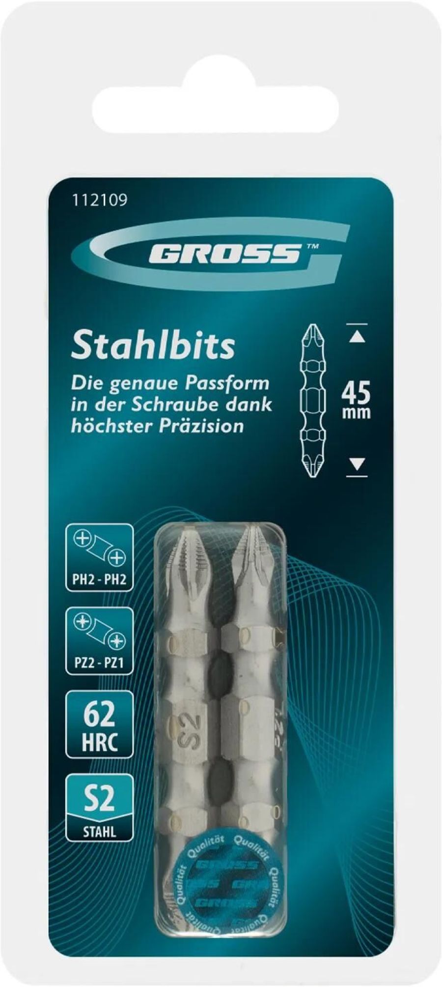 Набор двусторонних бит Gross 112109 состоит из насадок PH2-PH2 х 45 мм и PZ2-PZ1 х 45 мм, изготовленных из стали S2. Предназначен для закручивания/откручивания саморезов по дереву и другого резьбового крепежа с помощью шуруповерта.