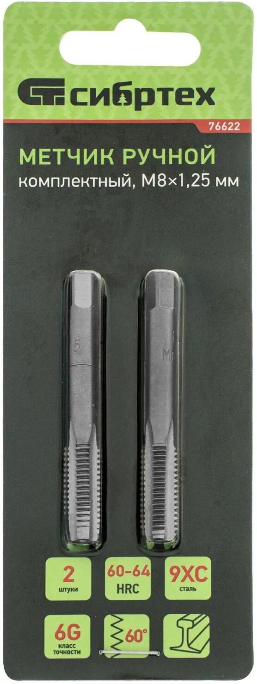 Ручной метчик Сибртех 76622 входит в комплект из 2 шт. и предназначен для нарезания внутренней резьбы диаметром М8 и с шагом 1,25 мм. Используется для работы со сквозными и глухими отверстиями. Устанавливается на метчикодержатель под посадочный квадрат 5 мм.