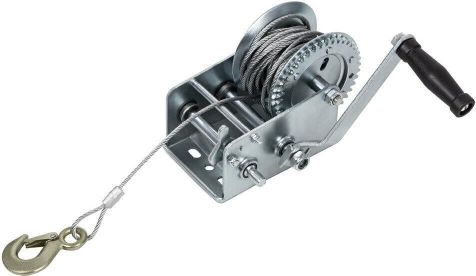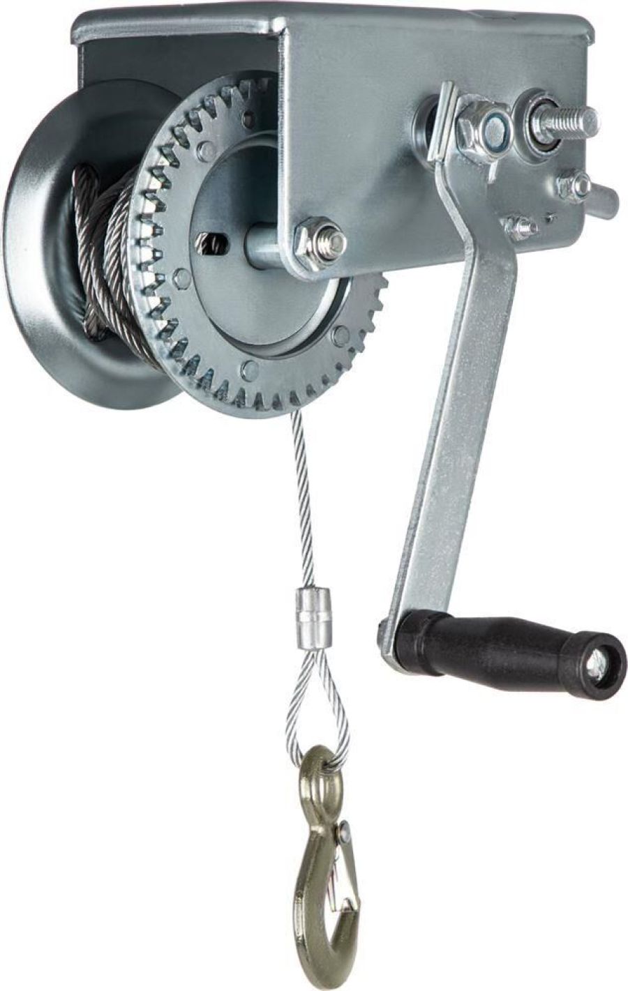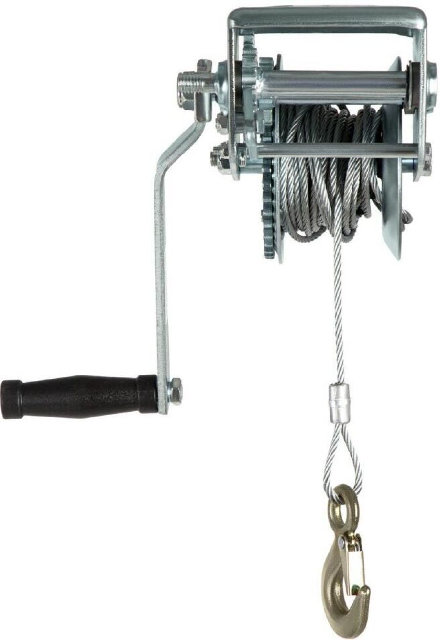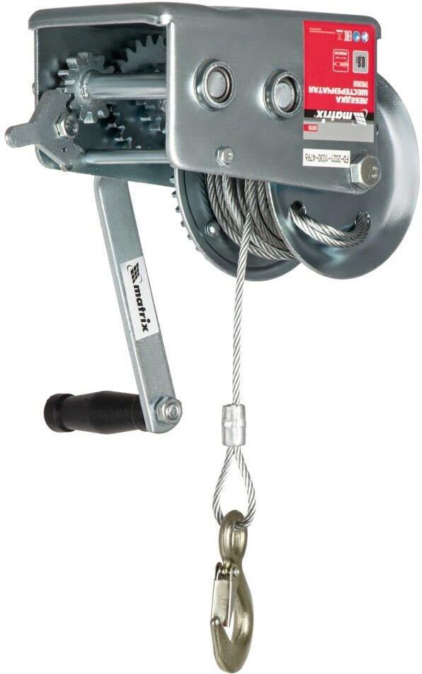 Шестеренчатая тросовая лебедка Matrix 522735 рассчитана на усилие тяги 0,8 т и предназначена для перемещения грузов в горизонтальной плоскости. Пригодится для проведения строительных, такелажных, погрузочно-разгрузочных работ. Лебедка с ручным рычажным механизмом не требует подключения к сети, что особенно актуально для работы вне помещения.ПреимуществаПрочность и долговечность — корпус лебедки и шестеренчатый механизм выполнены из стали.Режим холостого хода — во время работы без нагрузки не происходит самопроизвольной размотки/намотки троса.Надежная фиксация груза — на зацепном крюке предусмотрен специальный карабин.Безопасная работа — стальной трос диаметром 4,8 мм характеризуется высокой прочностью (при соблюдении условий эксплуатации).