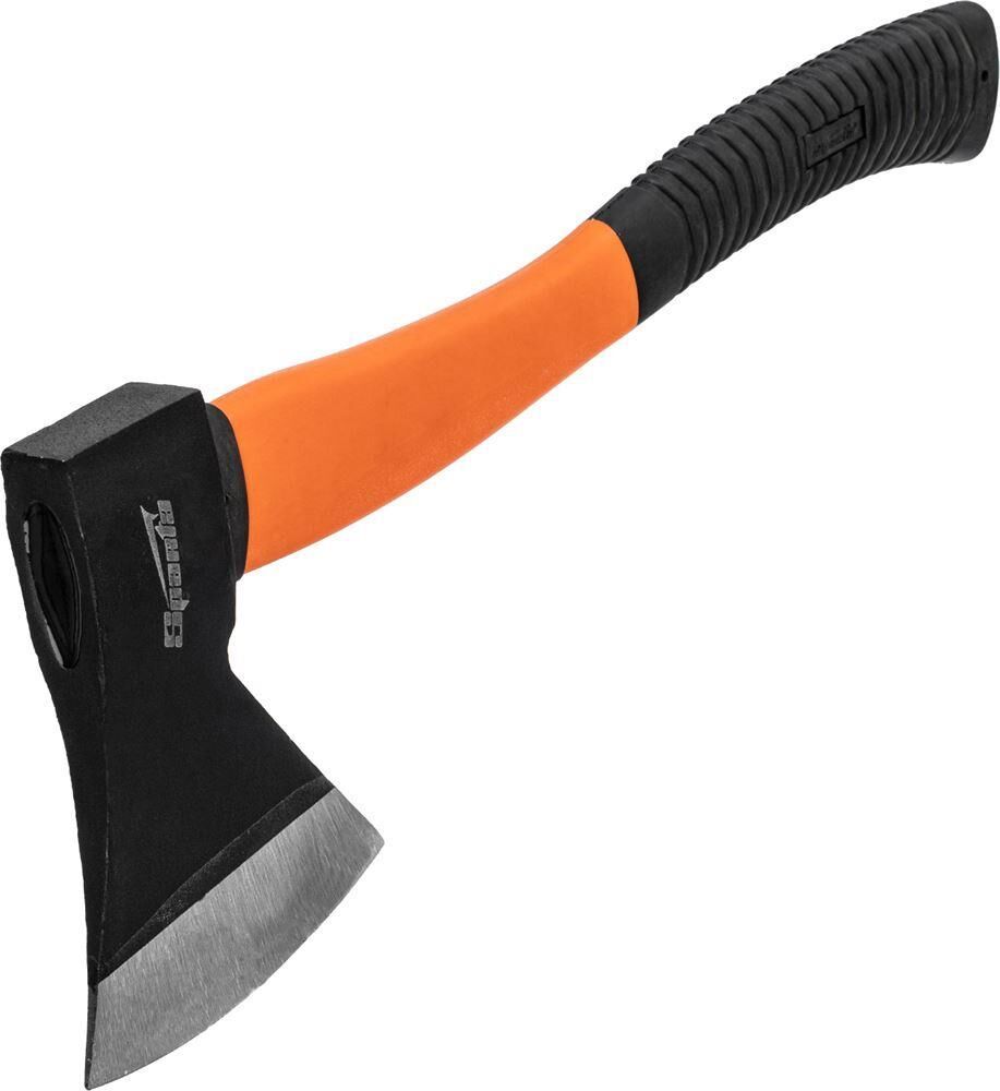 Топор Sparta 21641 с рабочей частью весом 1000 г и фибергласовым топорищем найдет широкое применение в хозяйстве. Благодаря ему можно заготовить дрова, срубить сучья, заострить колышки и выполнить другие работы на участке. Полукруглая режущая кромка упрощает работу, т.к. легко врезается в древесину.ПреимуществаПолотно выполнено из прочной стали 60Г методом свободной ковки, поэтому прослужит долго.Голова топора покрыта краской, которая обеспечивает защиту от коррозии.Лезвие долго сохраняет остроту и характеризуется прочностью за счет закалки до твердости 50 HRC.Фибергласовое топорище устойчиво к сырости, УФ-лучам и прочим негативным воздействиям окружающей среды, а также снижает колебания, передающиеся при выполнении работ.В качестве фиксатора головы на рукоятке выступает высокопрочная эпоксидная смола, что гарантирует надежность крепления.Резиновые вставки и изогнутая форма топорища способствуют надежному захвату инструмента.Вес полотна 1000 г и рукоятка длиной 470 мм позволяют делать хороший замах для сильного удара, что повышает эффективность рубки.Благодаря отверстию на рукоятке топор можно подвешивать для компактного хранения или использовать шнурок для закрепления на запястье.
