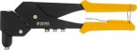 Заклепочник ручной литой Denzel 40442 длиной 285 мм, поворотный на 0-360°, используется для создания неразъемных соединений с помощью алюминиевых вытяжных заклепок диаметром 2,4-3,2-4,0-4,8 мм, стальных диаметром 2,4-3,2-4,0 мм и вытяжных заклепок из «нержавейки» диаметром 2,4-3,2 мм. Голова инструмента вращается на 360°, что упрощает работу в стесненных условиях. Заклепочник пригодится на производстве, в ремонтной мастерской, а также в быту.ПреимуществаПрочность и долговечность — корпус из алюминиевого сплава устойчив к механическим нагрузкам.Надежность — трехсегментный цанговый механизм из прочной стали 35Х крепко удерживает вытяжную шпильку заклепки.Безопасность — фиксатор рукоятки предотвращает случайное срабатывание инструмента во время транспортировки и позволяет сэкономить место для хранения.Готовность к работе — в комплект поставки включены сменные головки для заклепок разного размера и ключ для замены насадок.Продуманное хранение сменных насадок — головки крепятся на корпус, поэтому они всегда будут под рукой и не потеряются.Комфортная работа — эргономичные рукоятки с рельефной поверхностью надежно ложатся в руку.