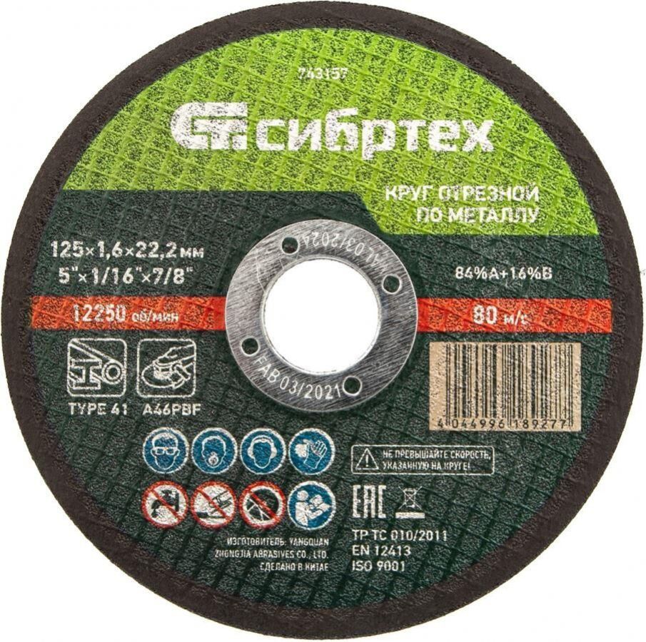 Отрезной круг по металлу Сибртех 743157, 125 х 1,6 х 22,2 мм, используется в качестве оснастки на УШМ для сухого реза изделий из углеродистых сталей: труб, арматуры, проволоки и т.д. Высокая производительность позволяет использовать круг как в быту, так и в частной мастерской или на небольших производствах.ПреимуществаАбразивные зерна из оксида алюминия имеют острые грани и легко справляются с резкой твердых материалов.Двухслойная усиленная стеклосетка придает кругу прочность на разрыв, что повышает безопасность работы.Бакелитовая связка с упрочняющими элементами обеспечивает максимальную износостойкость круга.Круг быстро режет материалы, позволяя получить аккуратный срез.Круг отличается превосходным качеством, т.к. изготовлен на высокотехнологичном оборудовании квалифицированным персоналом.