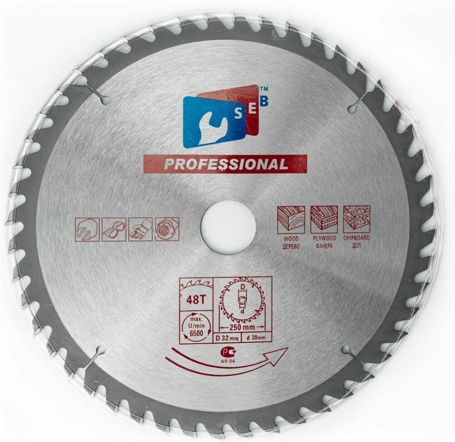 Диск пильный BELMASH 250x3,0/2,0x32/30, 24T с твердосплавными напайками, которые делают зубья износостойкими, способными сопротивляться повышенным ударным нагрузкам. Назначение: для деревообрабатывающих многофункциональных, циркулярных, форматно-раскроечных станков, дисковых и торцовочных пил и т. п. Можно устанавливать на станки BELMASH: UNIVERSAL-2000, UNIVERSAL-2500E, MOGILEV 2.4, MOGILEV 2.0, MOGILEV 2.4 ECO, SDMP-2200 , SDM-2000M, CBS-2000, TS-250ST1000, TS-250ST1000/400, TS-250ST1300, TS-250ST1300/400, TS-250ST1600, TS-250ST1600/400, TS-250R, TS-250R (1.8 кВт, 400 В), LTS-250 – 220 V, LTS-250 – 380 V Градусы заточки: передний угол 15 градусов, задний угол 15 градусов. Тип зуба ATB: переменные зубья с разносторонним углом наклона главной задней поверхности. Максимальная частота вращения – 6100 об./мин. Посадочный диаметр - 32 мм. В комплекте имеется переходное кольцо на внутренний диаметр 30 мм. Применение: быстрый поперечный и продольный распил древесины, фанеры, МДФ, ДСП, ОСП.