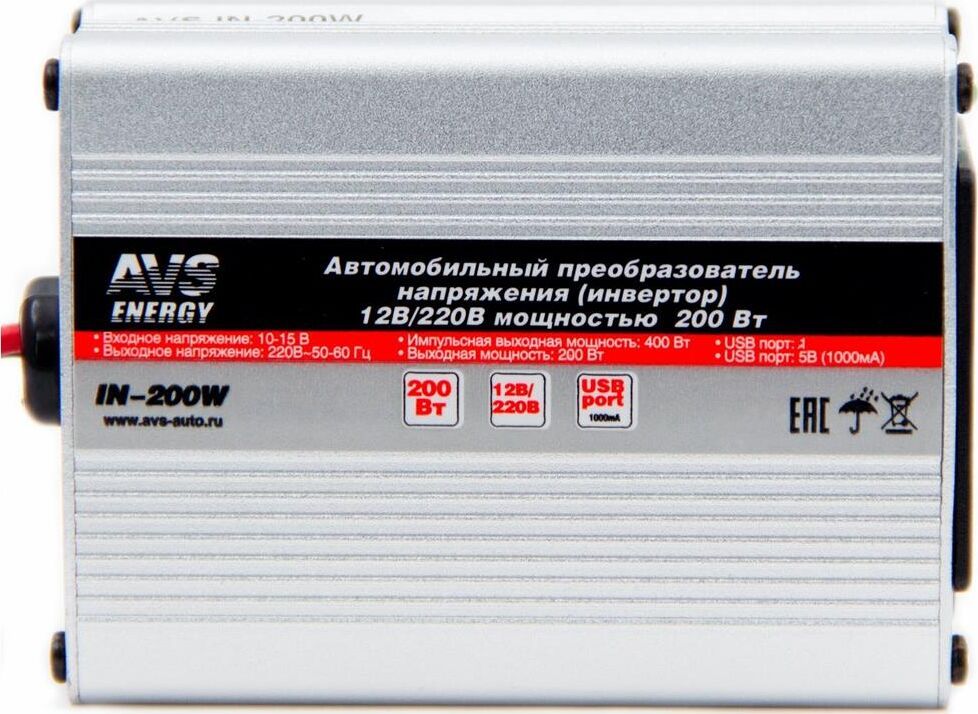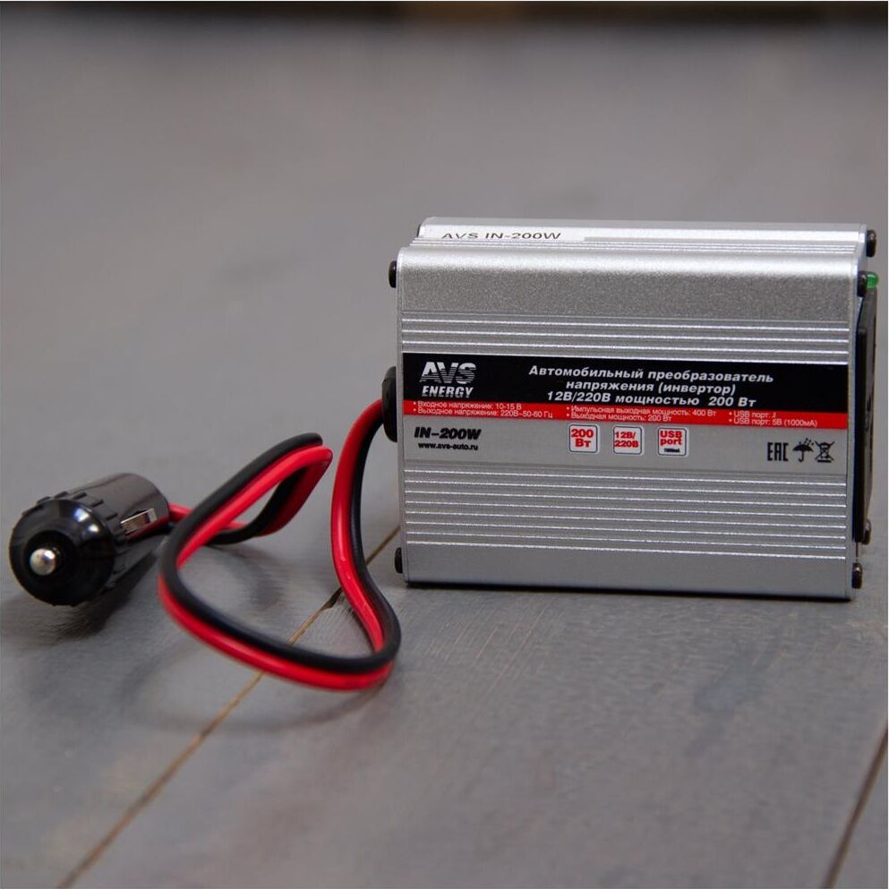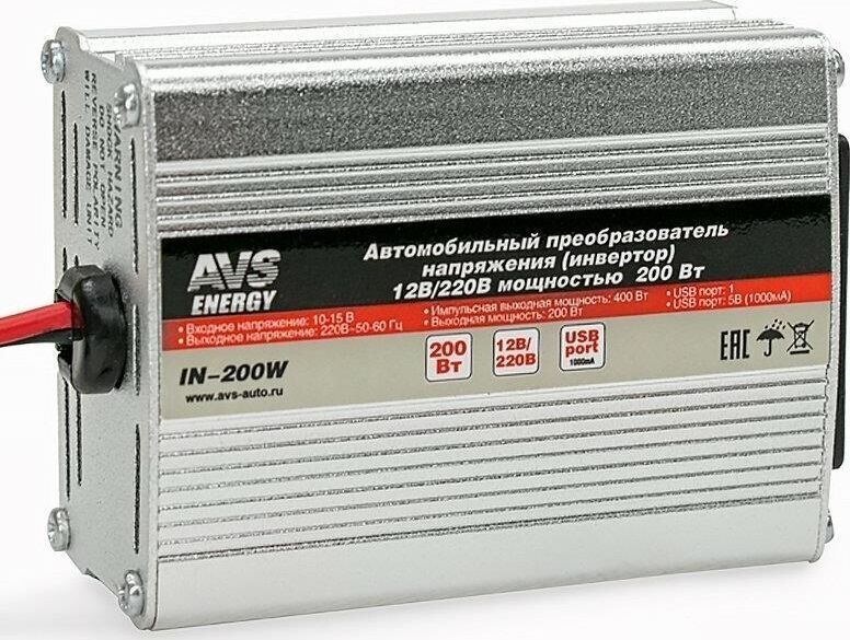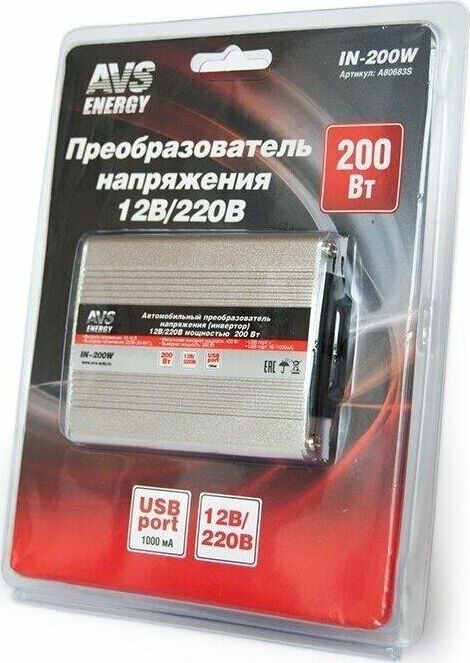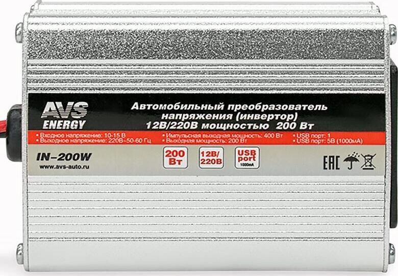 Комплектация: Автомобильный инвертор 12/220V AVS IN-200W - 1шт. , Количество разъемов USB: 1