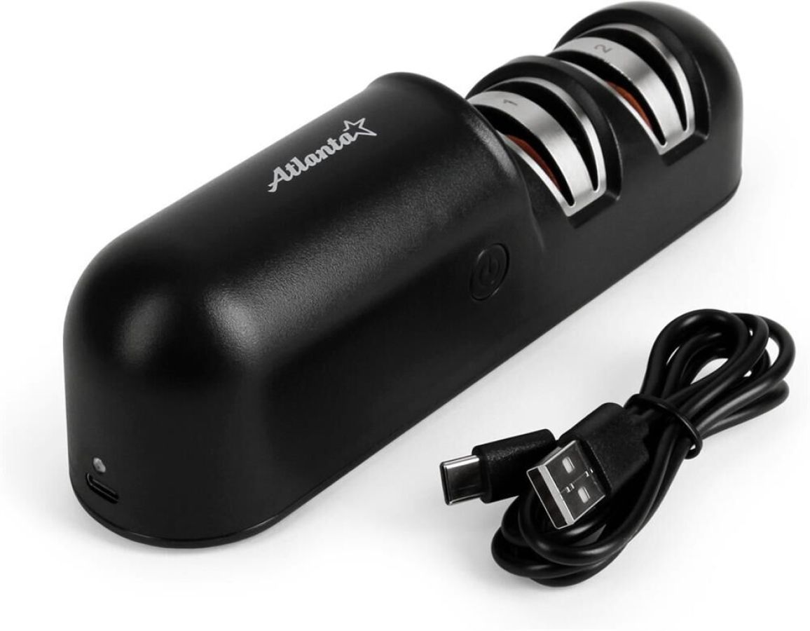 ATH-4603 (black) Точилка для ножей электрическая Atlanta предназначена для быстрой и безопасной заточки лезкий. Выполнена из прочного ABS-пластика. Работает от встроенного аккумулятора. USB-кабель в комплекте.