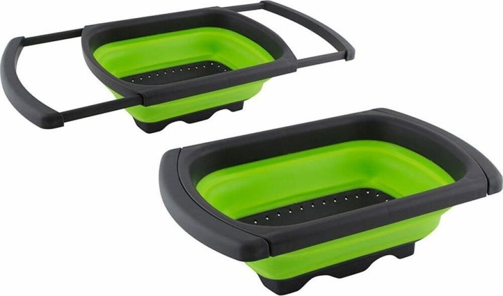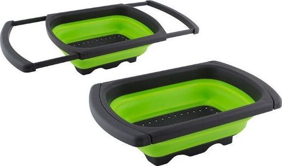 Дуршлаг удобно использовать, так как в отличие от обычных дуршлагов его не нужно удерживать в руках, чтобы пропустить жидкость. Еще одним достоинством является компактное хранение. Размер (разлож.): 60 (38,5) * 25*12 см Размер (слож.): 38,5 * 25 * 4.2 см Вес: 550 гр Материал: термопластичная резина, полипропилен