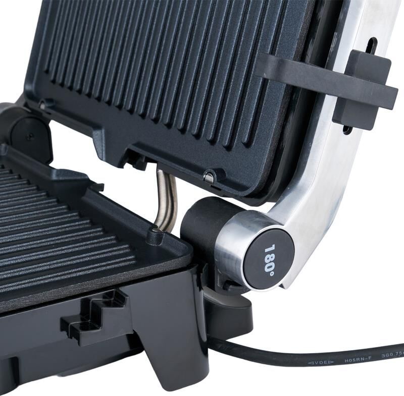 Параметры электросети, В/Гц 220-240 / 50-60 Мощность, Вт 2000 Цвет нержавеющая сталь, чёрный Материал корпуса металл Тип управления механический Настраиваемый таймер - Размер рабочей поверхности, мм 280x230 Размер изделия, мм 357x340x140 Вес, кг 3,45 Антипригарное покрытие на водной основе Режим барбекю открытие на 180° Регулировка высоты верхней крышки Регулируемый термостат Функция пресса Съемный поддон для сока и масла Удобная ручка с защитой от нагревания Защита от перегрева