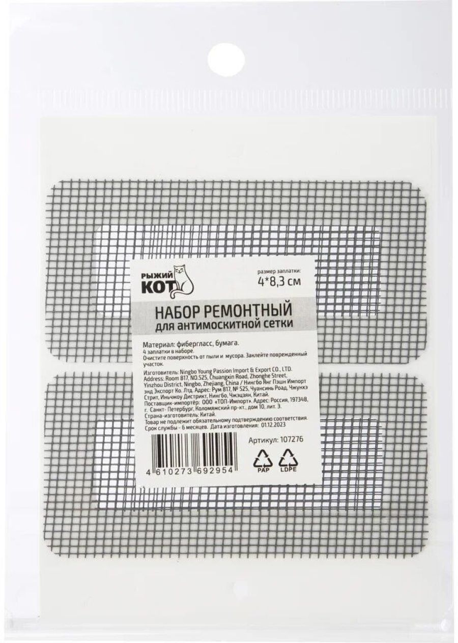 набор ремонтный для антимоскитной сетки материал - фибергласс размер 1 шт: 4*8,3 см 4 шт в наборе упаковка - пакет с подвесом, стикер