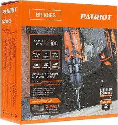 Напряжение аккумулятора, В 12. Тип аккумулятора Li-ion. Емкость аккумулятора, А*ч 2. Макс. диаметр сверления (металл/бетон/дерево), мм 6/6/16. Количество регулировок крутящего момента 18+1. Мягкий крутящий момент, Нм 20. Жесткий крутящий момент, Нм 25. Диаметр патрона, мм 10. Количество скоростей 2. 1 скорость, об/мин 0-350. 2 скорость, об/мин 0-1350. Наличие реверса . Регулировка частоты вращения . Блокировка шпинделя . Наличие подсветки . Быстрая зарядка . Прорезиненная рукоятка . Количество аккумуляторов в комплекте, шт 1.