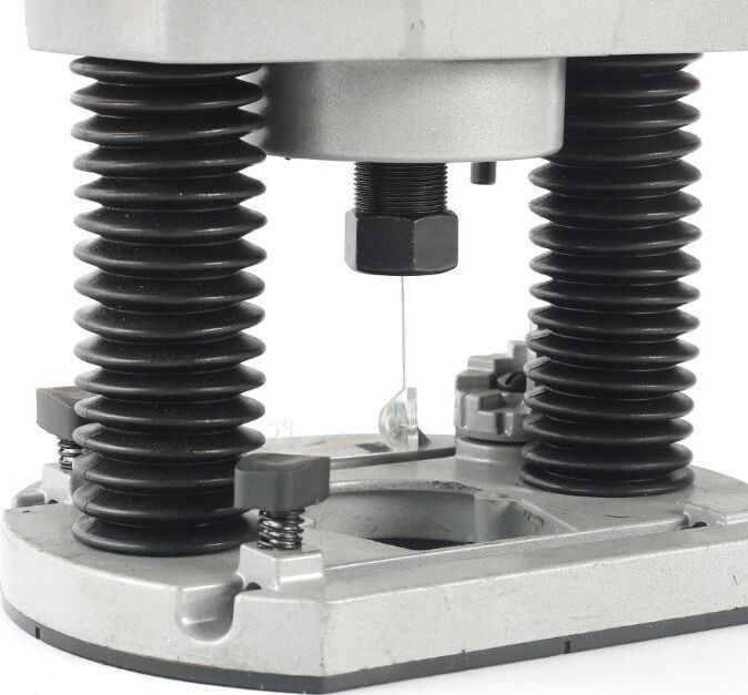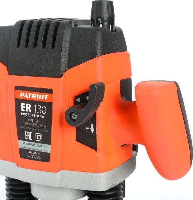 Ход головки, мм 55, Размер цанги, мм 6/8/12, Потребляемая мощность, Вт 1300, Регулировка частоты вращения, Плавный пуск, Подключение пылесоса, Прорезиненная рукоятка.