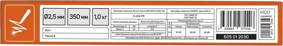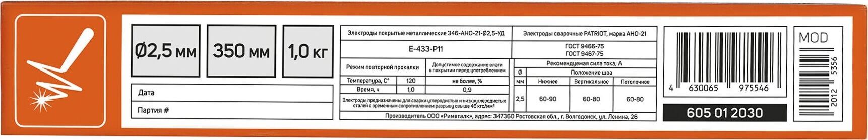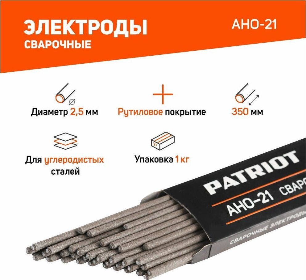 Электроды марки АНО-21 - универсальный проверенный временем электрод, обладает высокими сварочно-технологическими свойствами: легким возбуждением и стабильным горением дуги при сварке от источника питания с напряжением холостого хода не менее 50 вольт, отделимостью шлаковой корки. Длина, мм 350. Диаметр электрода, мм 2,5. Эксплуатационный вес, кг 1. Вес, кг 1.05.
