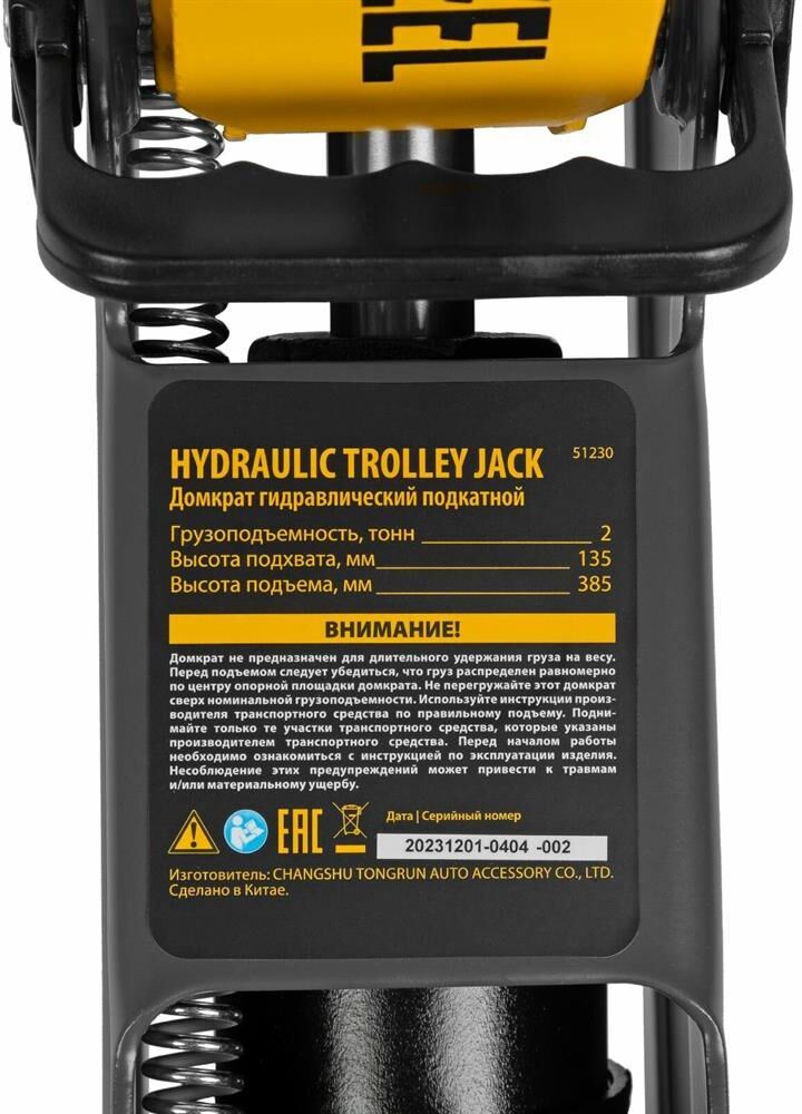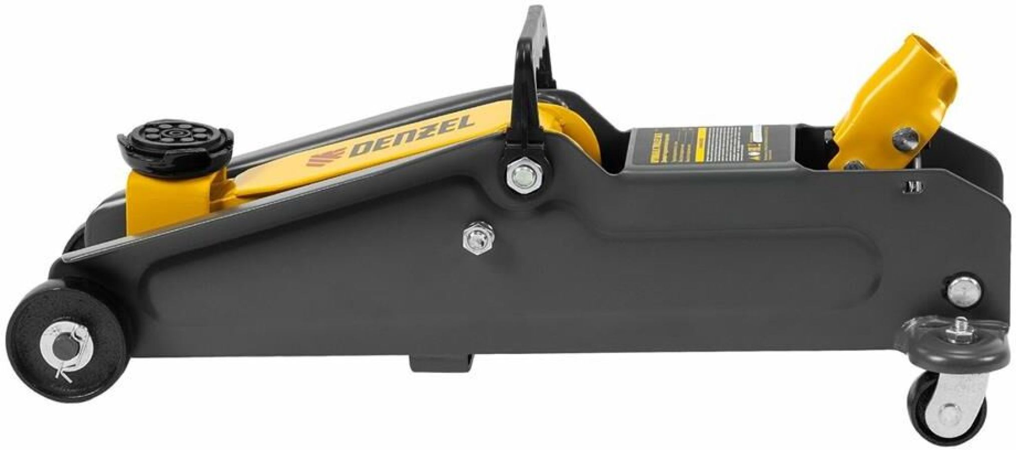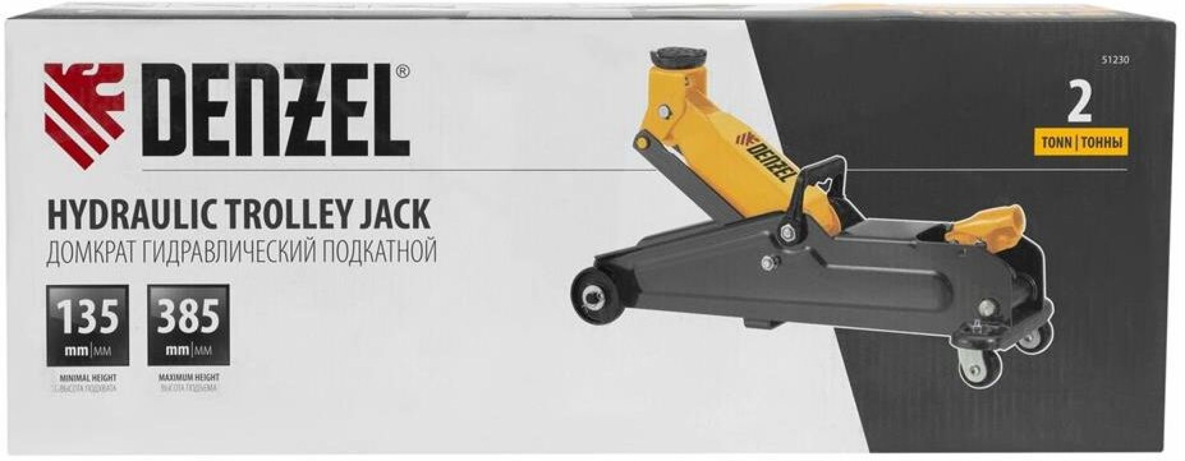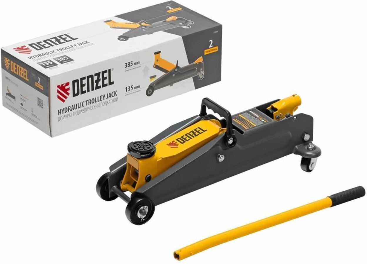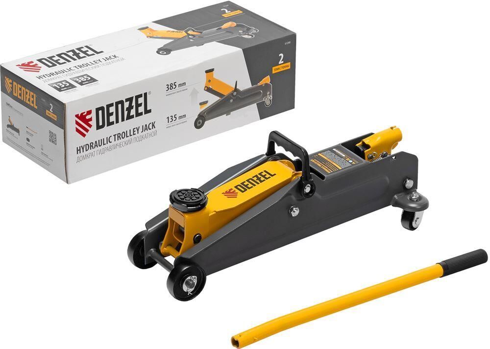 Гидравлический подкатной домкрат Denzel 51230 с высотой подхвата 135 мм предназначен для плавного подъема грузов массой до 2 т на высоту до 385 мм. Домкрат пригодится владельцам легковых автомобилей со стандартным клиренсом.