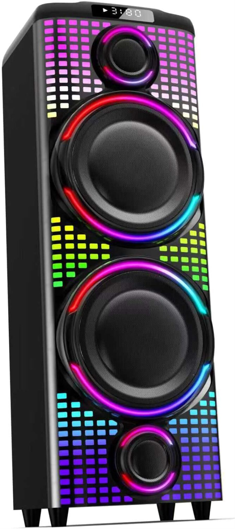 Акустическая система с Bluetooth, FM радио, и TWS. Пиковая музыкальная мощность: 800Вт (PMPO), Выходная мощность: 100Вт (RMS), Материал корпуса MDF, пластик, LED дисплей Настраиваемая светодиодная подсветка с функцией отключения, Частотный диапазон: 60Гц-18КГц, Диапазон частот FM тюнера: 87,5 - 108МГц, Размеры динамиков, низкочастотный динамик -10'' *2шт, твитер -3'' *2шт, Bluetooth V5.3, USB для проигрывания музыки, USB для зарядки внешних устройств 5V, 1 входа для микрофона, 1 вход для гитары, Вход AUX Вход TF CARD, Регулировка громкости микрофона, уровня эхо, функция регулировки эквалайзера, Функция TWвS, Встроенная аккумуляторная батарея 12В, 7000 мAч Внешнее питание: AC 100-240В, Дистанционный пульт управления, Размеры изделия, 35 * 31,5 * 104 см, Вес: 17,25 Кг.