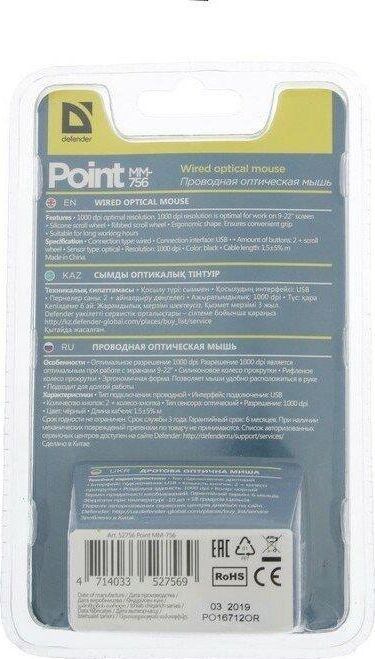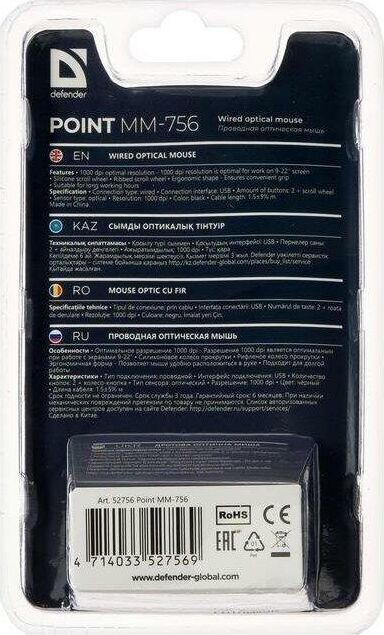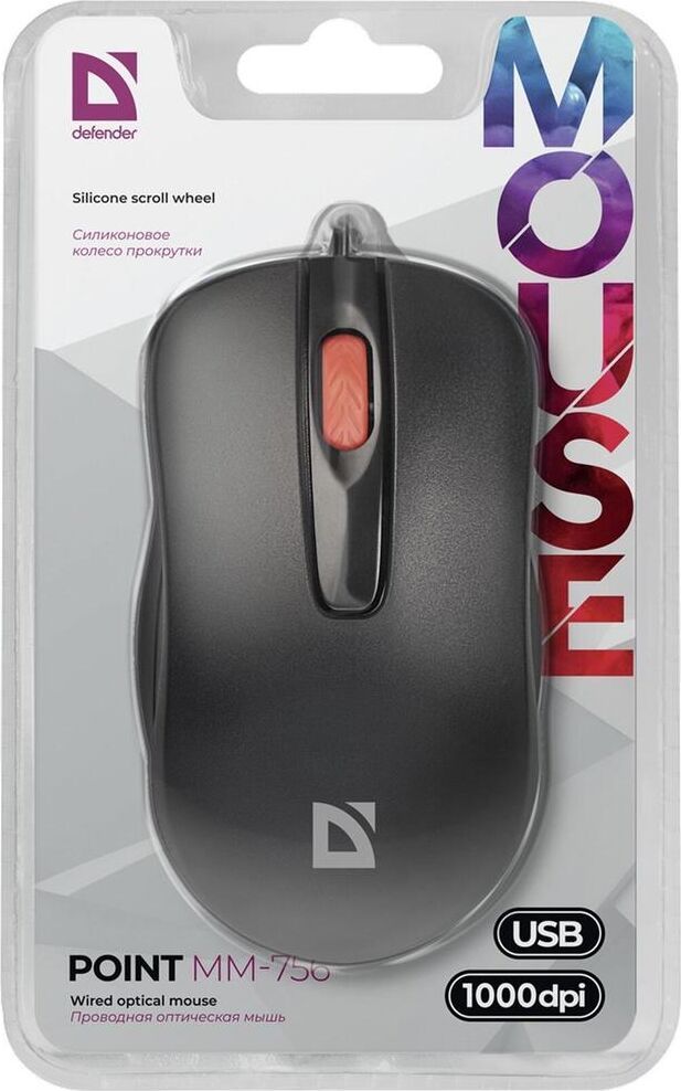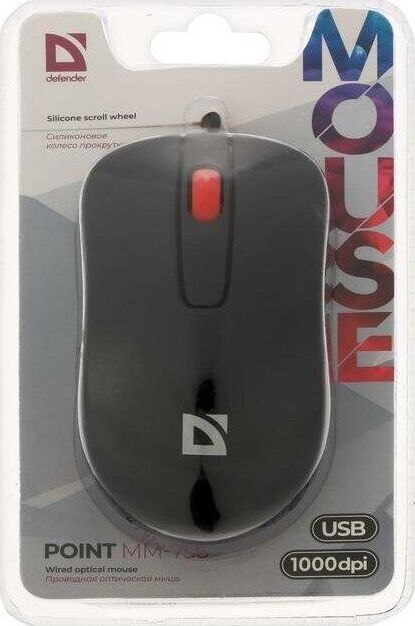 Мышь проводная, интерфейс подключения USB, тип сенсора - оптический, количество кнопок 2 + колесо-кнопка, разрешение 1200 dp, эргономичная форма, 1,5 м.