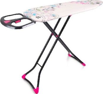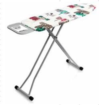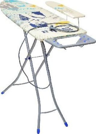 Гладильная доска с электросоединителем и подставкой под утюг, регулируемая по высоте. Удобная полка для белья и переносной подрукавник.