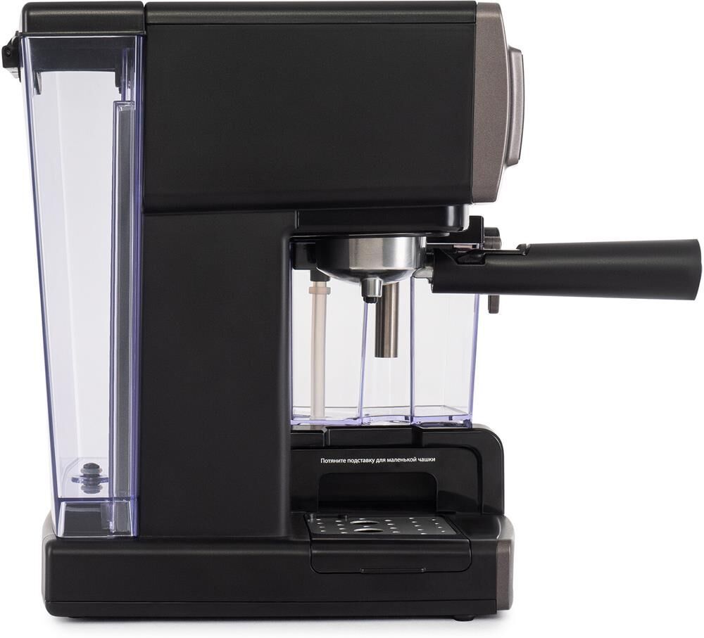 Кофеварка рожковая. Мощность: 1238 Вт, Давление помпы: 15 Бар, Тип кофе: молотый, Функции: подача пара, настройка размера порций, настройка крепости кофе, Встроено: капучинатор, Материал корпуса: пластик. Цвет: