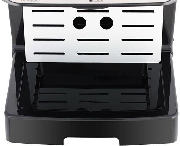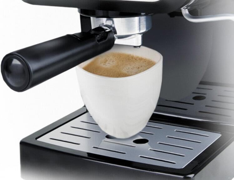 Кофеварка рожковая. Мощность: 1050 вт, Давление помпы: 15 бар, Съемный резервуар для воды: 1,5 литра, Капучинатор, Индикатор уровня воды, Индикация включения, Плита автоподогрева, Подогрев чашек, Приготовление капучино, Приготовление эспрессо, Съемный лоток для сбора капель, Материал корпуса: пластик, Особенности: уникальный фильтр для приготовления эспрессо с густой пенкой, Цвет: Черный