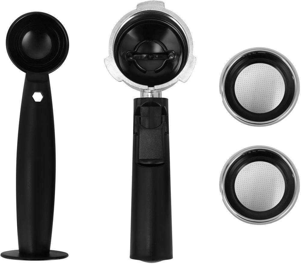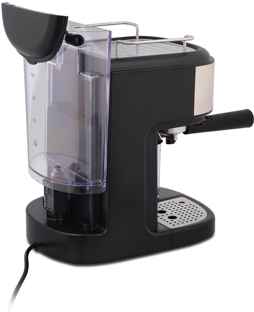 Кофеварка рожковая. Мощность: 1250 вт, Давление помпы: 15 бар, Съемный резервуар для воды: 1,5 литра, Итальянская помпа фирмы Ulka, Кофеварка с термоблоком обеспечит безупречный вкус напитка, быстроту приготовления, уменьшить затраты на электроэнергию, Капучинатор, Индикатор уровня воды, Индикация включения, Подогрев чашек, Приготовление капучино, Приготовление эспрессо, Съемный лоток для сбора капель, Вращающийся фильтродержатель, Особенности: Уникальный фильтр для приготовления эспрессо с густой пенкой, Тип используемого кофе: молотый, Цвет: Черный/серебро