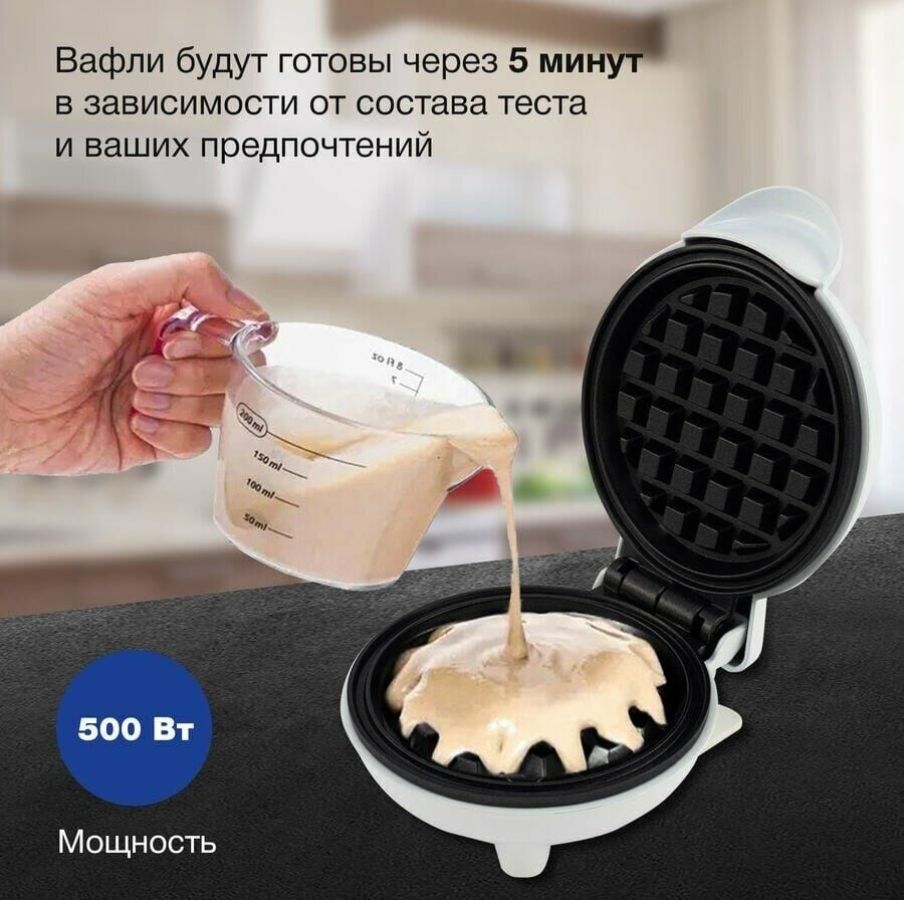 Тип Вафельница Мощность (макс) 500 Вт Форма нагревательных частей круглая Формы для готовки вафельница Количество отделений в пластине для вафель 1 Индикатор включения Индикатор нагрева Цвет черный Ширина рабочей поверхности 12 см Длина рабочей поверхности 12 см Материал корпуса бакелит/пластик Антипригарное покрытие нагревательных частей Срок гарантии 24 мес.