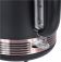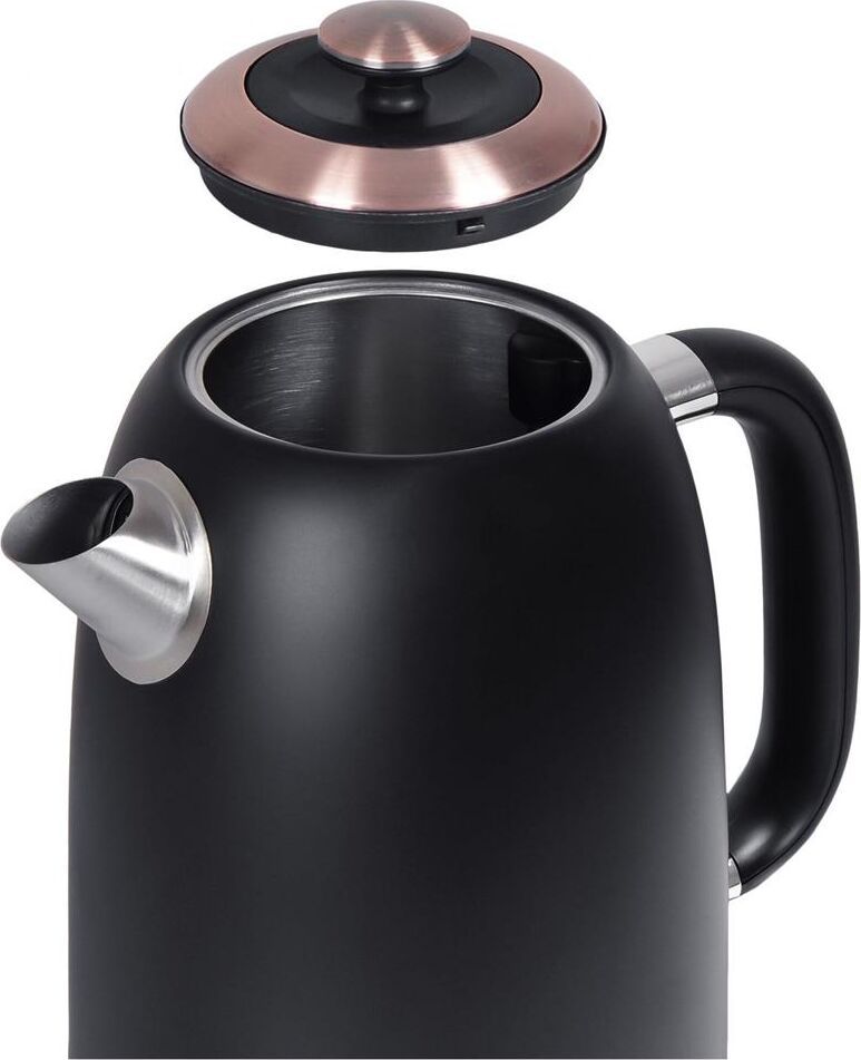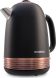 Максимальный объем 1.7 л Мощность 2200 Вт Нагревательный элемент скрытый Вес 0.9 кг Цвет черный Материал корпуса нержавеющая сталь/пластик Дополнительный цвет бронзовый Индикатор включения Индикатор уровня воды Фильтр от накипи Автоматическое отключение Температурные режимы 1 шт Защита от включения без воды Подставка 360 градусов Размер чайника 22,5х15,5х26см Длинна провода 75см Срок гарантии 24 мес.