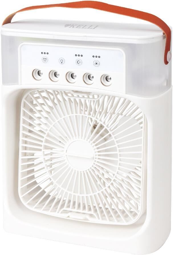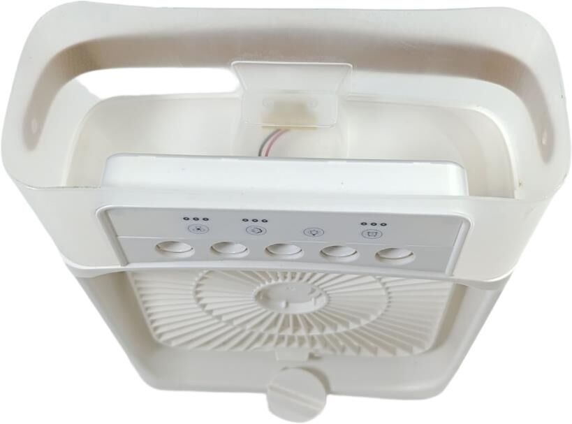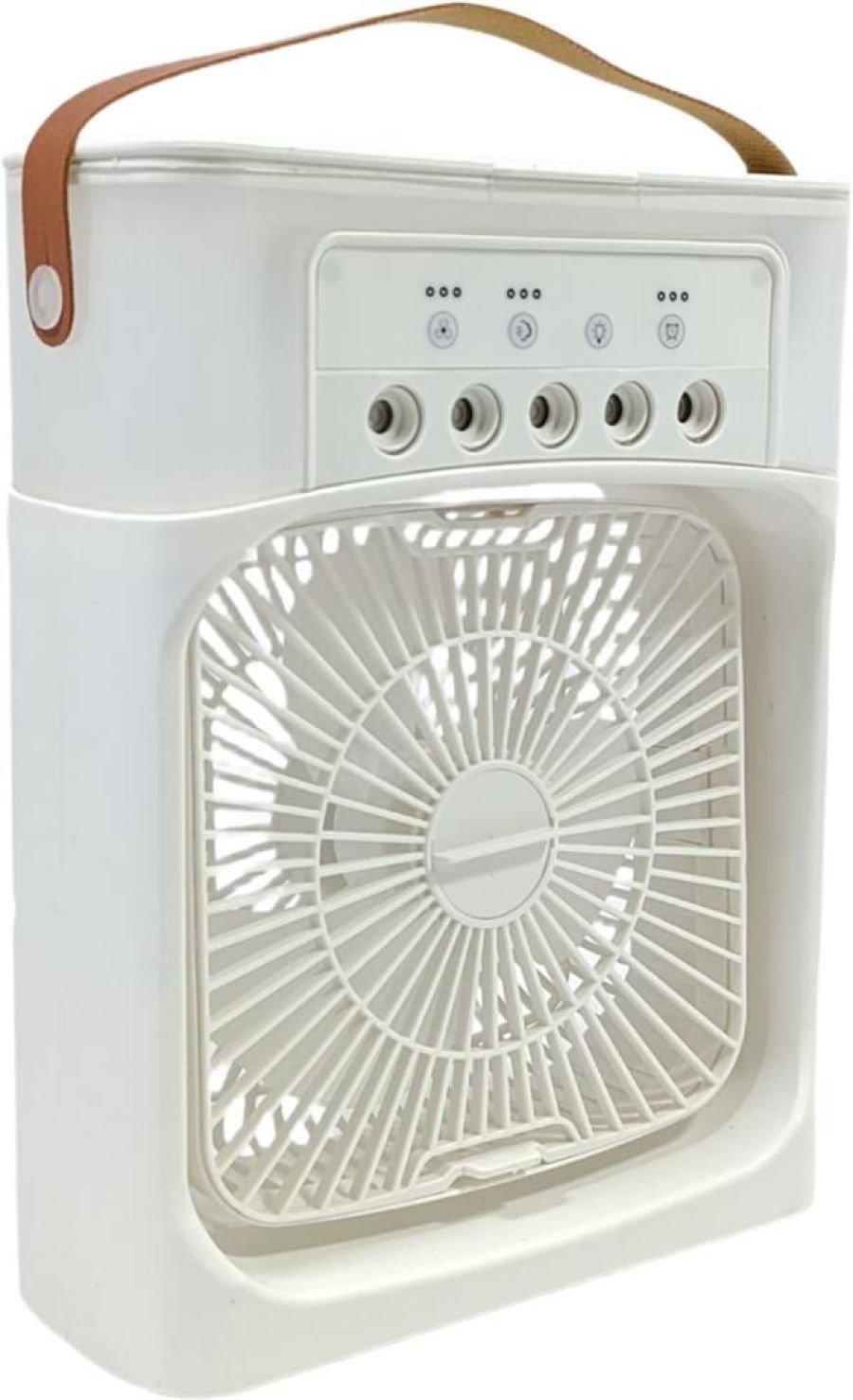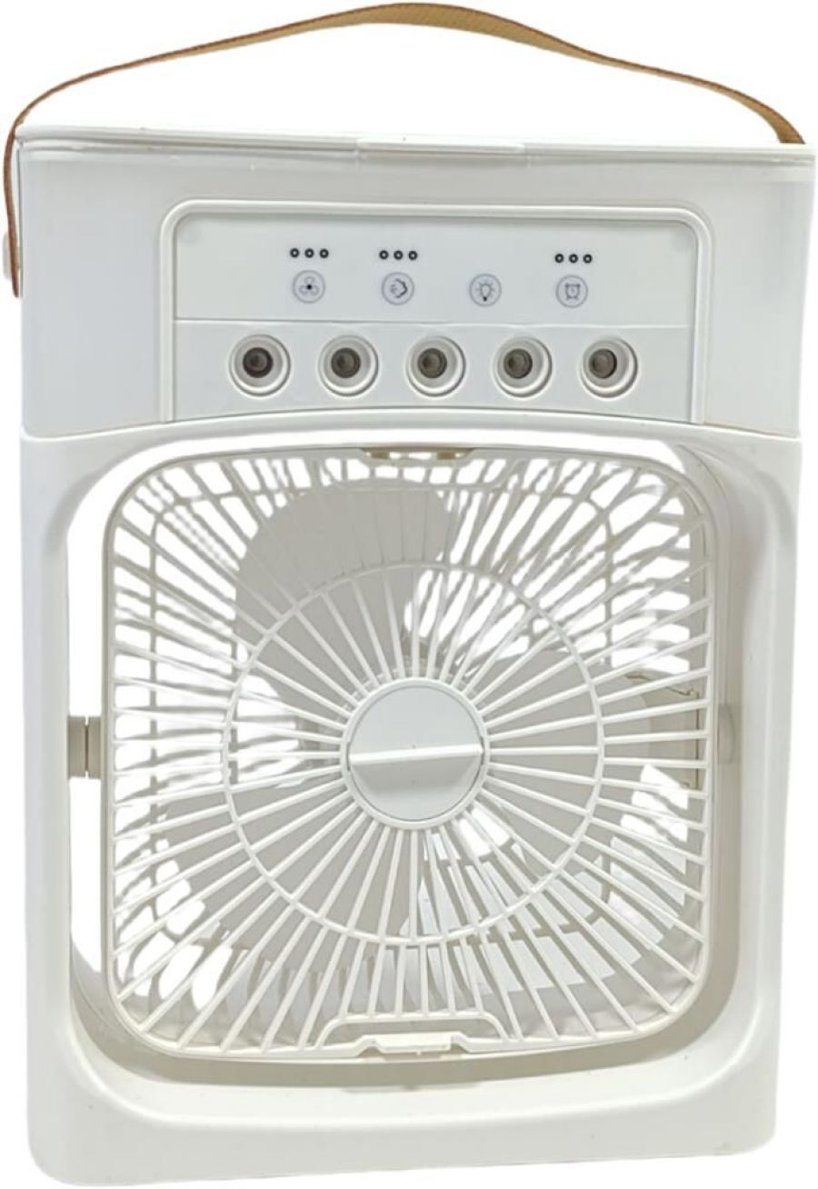 Настольный вентилятор с функцией увлажнителя и таймером выключения Диаметр: 15 см Мощность: 10 Вт 3 скорости Объём: 600 мл 3 режима распыления воды 7 цветов подсветки Встроенный таймер Отсек для аромамасел USB(Туре-С) Цвет БЕЛЫЙ Размер упаковки: 34,5*22*38см Сеть: 5В,2А