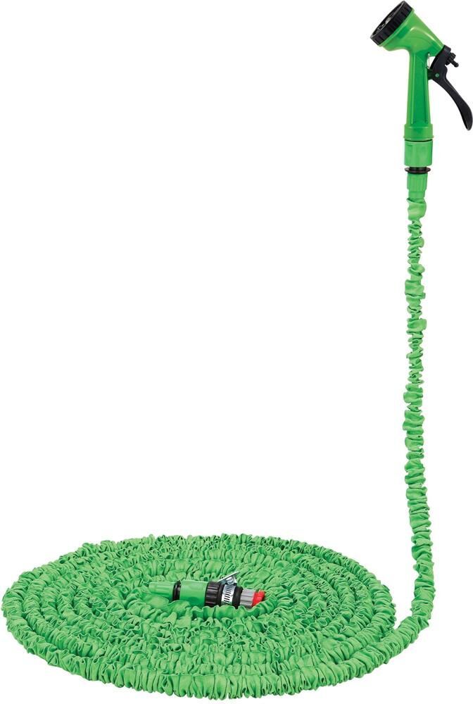 Специальный растяжной шланг увеличивается в длину в 3 раза. Диаметр 1/2". Изготовлен из сверхпрочного латекса, благодаря чему дольше сохраняет форму, выдерживает практически любое натяжение. Состав набора: шланг растяжной (номинальная длина – 10 м, максимальная растяжимость - 30 м) с двумя соединителями. пистолет для полива (7 режимов полива) адаптер с переходником 1/2 и 3/4 Материал: латекс, пластмасса, полиэстер, металл.