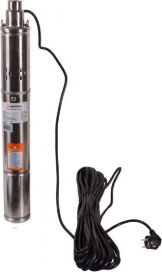 Погружной скважинный электронасос д/чистой воды. Вертикальная установка. Бесшумный двигатель. Мощность 750Вт. Макс. объем подачи воды 3200 л/ч. Макс. напор 45м. Макс. глубина погружения 15 м. Кол-во оборотов двигателя 2850 об/мин.