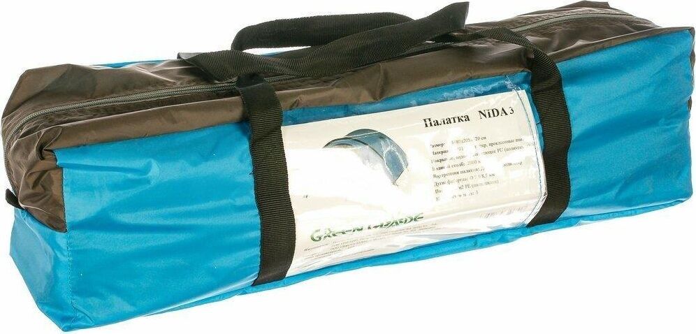 GREEN GLADE NIDA 3 "Куполообразная палатка Green Glade NIDA 3 с компактным тамбуром имеет внутри москитную сетку, защищенный от непогоды вход, вентиляцию. • Количество мест: 3 • Размер (ДхШхВ): 205+80х205х120 см • Внешний тент: 190Т полиэстер • Водоотталкивающее покрытие: полиуретан • Швы: проклеенные • Водяной столб: 2000 мм • Внутренний тент: ""дышащий полиэстер"" • Дуги: 7,9/8,5 мм стеклопластик • Пол: 120 м2 полиэтилен • Вес палатки: 3,3 кг • Размер в собранном виде (диаметр х длина): 16х51 см • Количество штук в коробке: 4 штуки • Размер коробки (ДхШхВ): 55х33,5х30 см • Вес коробки: 13,8 кг"