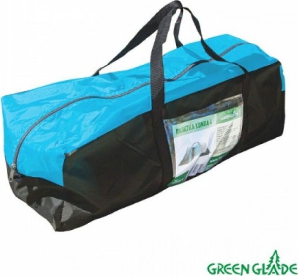 GREEN GLADE KONDA 4 "Палатка Green Glade KONDA 4 имеет две раздельные комнаты и два входа. Также внутри есть большой внутренний защищенный тамбур, обзорные окна, москитные сетки на входе и окнах откидной козырек на стойках, вентиляция. •Количество мест: 4 •Размер (ДхШхВ): 160(140)+150+160(140)х230(210)х150/190 см • Внешний тент: 190T полиэстер •Водоотталкивающее покрытие: полиуретан •Швы: проклеенные швы •Водяной столб: 2000 мм • Внутренний тент: ""дышащий"" полиэстер •Дуги: 9,5/8,5 мм стеклопластик + 16 мм сталь • Пол: 120 м2 полиэтилен •Вес палатки: 8,5 кг •Размер в собранном виде (диаметр х длина): 21х68 см •Количество штук в коробке: 2 штуки •Размер коробки (ДхШхВ): 68х27х35 см •Вес коробки: 17,65 кг"