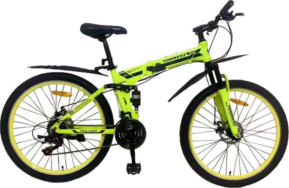Велосипед Torrent Transformer – складной “двухподвес”, который сочетает в себе компактность и комфорт передвижения. За минуту меняет свои габариты. Практичная и удобная модель в современных городских реалиях. Складной велосипед проще хранить в квартире, удобно переносить и брать с собой в дорогу. Два амортизатора компенсируют неровности и увеличивают комфорт велосипедиста. Такой велосипед обладает лучшей управляемостью на бездорожье, большей устойчивостью, экономией сил на преодоление препятствий. Велосипед оснащен светоотражателями, боковым упором для парковки и пластиковыми крыльями. Характеристики Категория: MTB Рама (материал): алюминий Размер рамы: 17″ Диаметр колес: 26″ Количество скоростей: 21 Вилка передняя: амортизационная Амортизатор задний: есть Система: GS Кассета (блок звезд): SAIGUAN Переключатель скоростей передний: SAIGUAN Переключатель скоростей задний: SHIMANO Tourney Шифтеры: SHIMANO Tourney Тормоз передний: дисковый механический Duoder Тормоз задний: дисковый механический Duoder Обода: дво