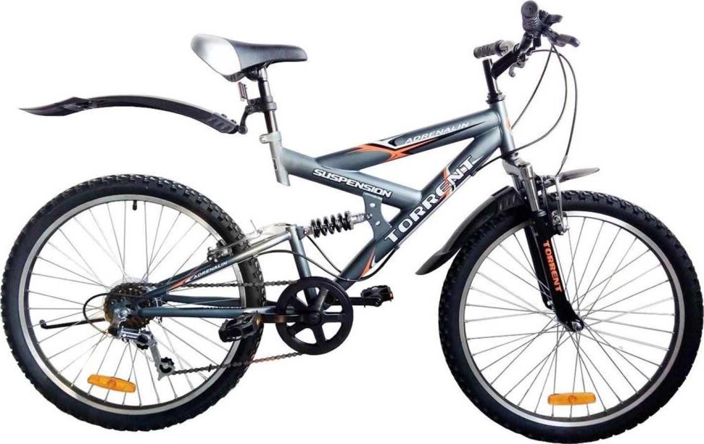 Велосипед Adrenalin предназначен для подростков и взрослых с ростом до 155 сантиметров. Подходит для езды по выделенным городским велодорожкам, пересеченной местности, подходит для сельских и загородных прогулок. Ростовка стальной рамы C-T17. Велосипед имеет такую конструкцию, которая позволяет перемещаться по дорогам со сложным рельефом (ямы, горки, пологие спуски). Комфортность езды достигается за счет гашения задним амортизатором толчков и вибраций, образующихся при столкновении колес с препятствием. Передняя амортизирующая вилка добавляет комфорта и безопасности при езде. Ободья колёс двойные, усиленные, декорированные в черный цвет. Шины адаптированы для езды по грунтовым дорогам и дорогам с твёрдым покрытием. Размер покрышек 24Х2,125. Передний и задний тормоз V-brake обеспечивает надежное торможение. Сиденье умеренной мягкости для придания спортивного стиля велосипеду регулируется по высоте. Фиксация высоты сиденья происходит с помощью ручного зажима «Quick release».